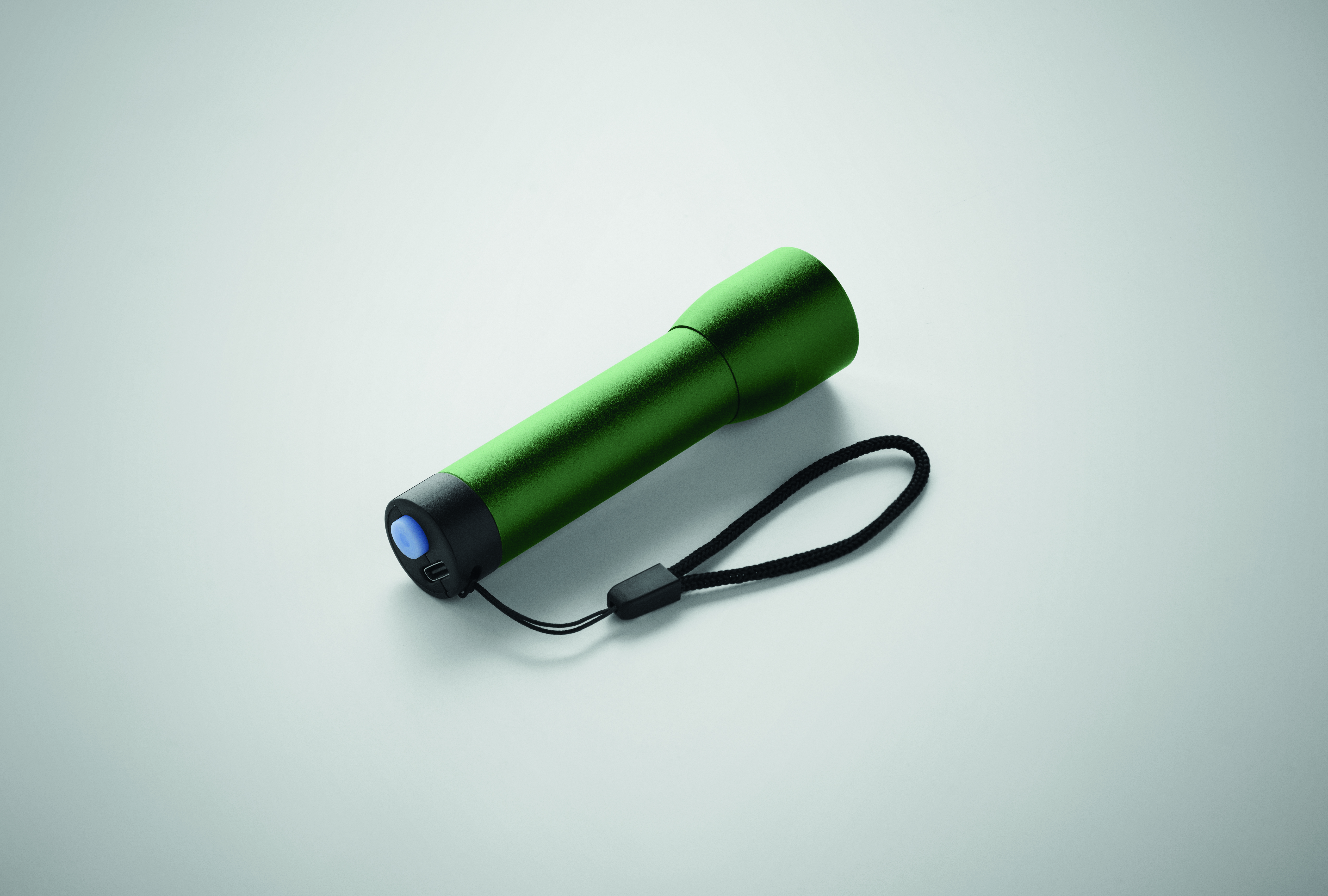 Latarka akumulatorowa z zluminium z recyklingu z wieloma ustawieniami światła i funkcją przybliżania/oddalania. Zawiera jedną wymienną baterię litową 14500. Mocna i wytrzymała do codziennego użytku.