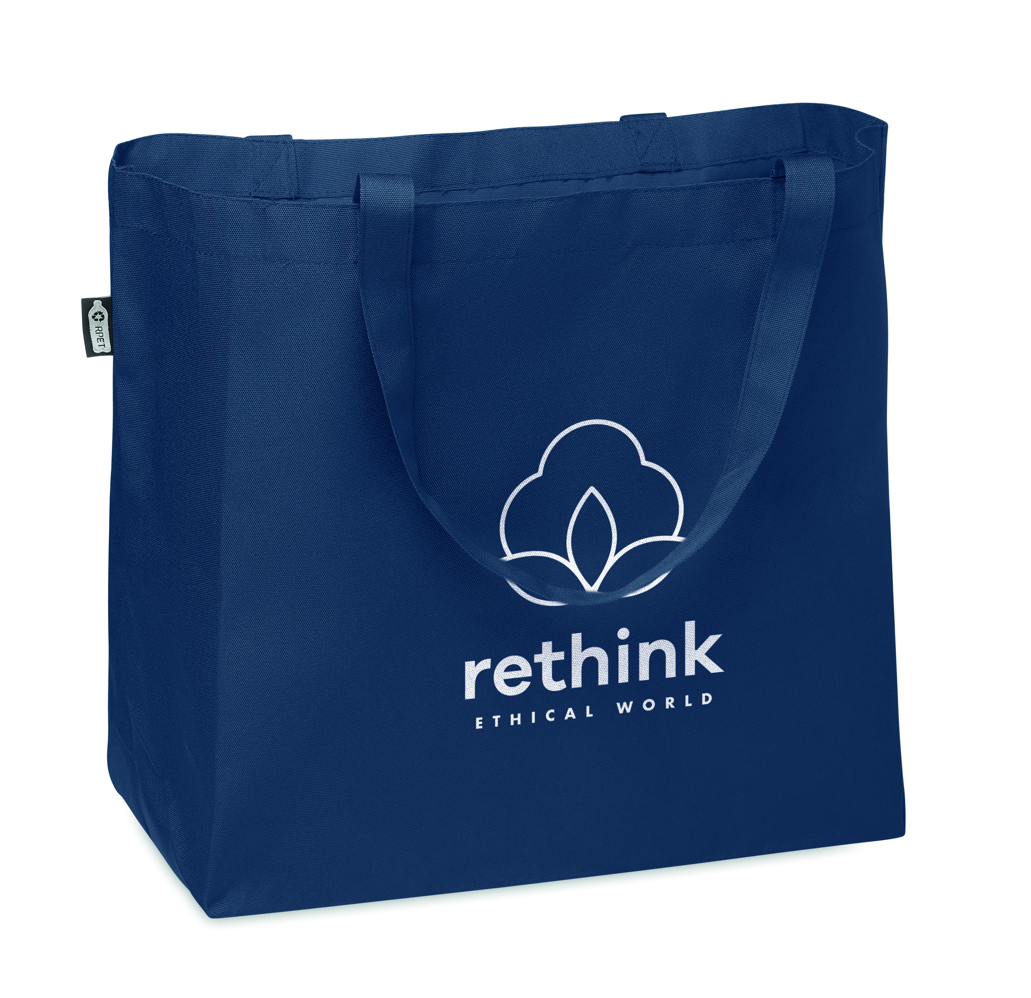 Duża torba na zakupy lub torba plażowa z 600D RPET z długimi uchwytami i płaskim dnem.