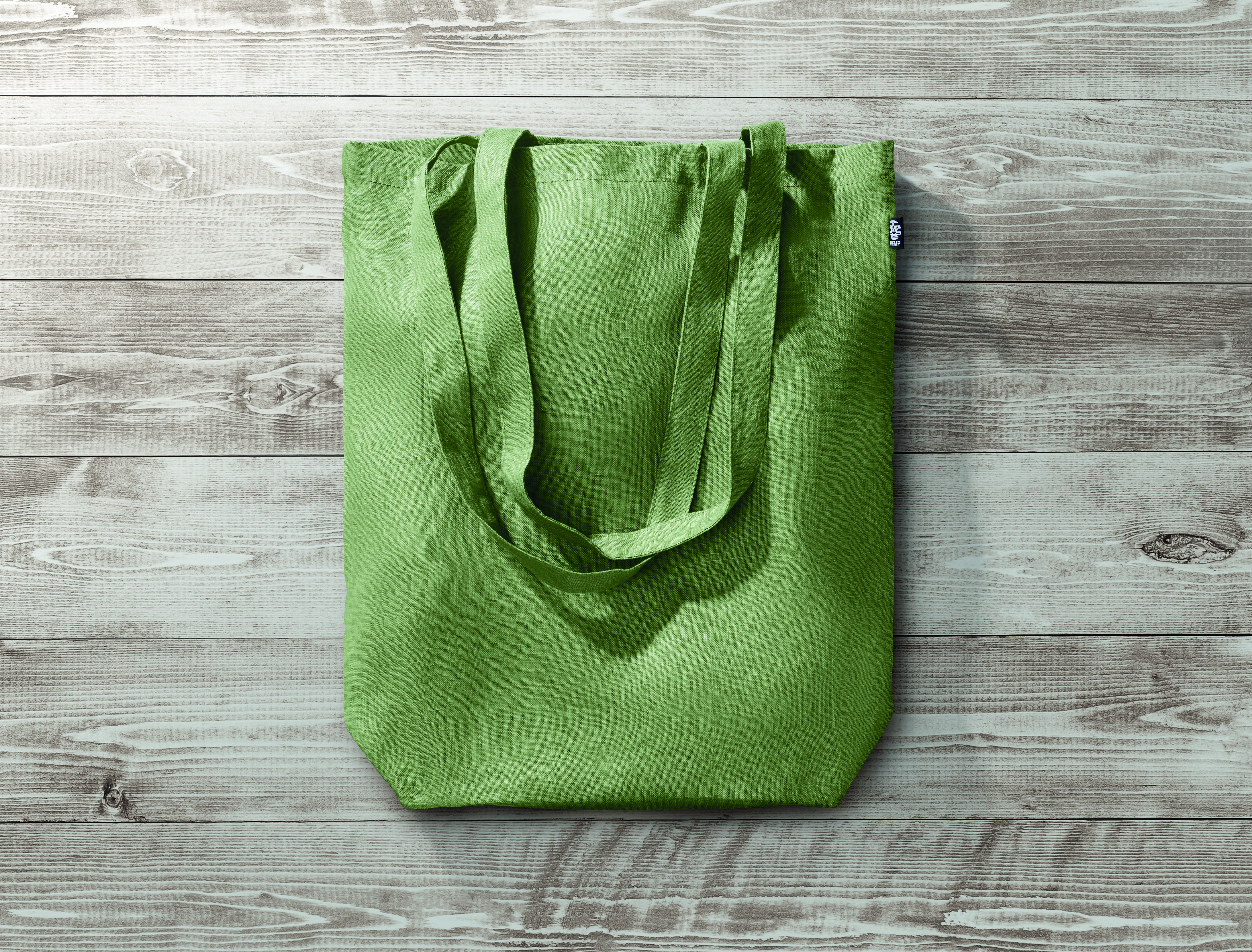 Torba na zakupy ze 100% tkaniny konopnej z długimi uchwytami. 200 gr / m².