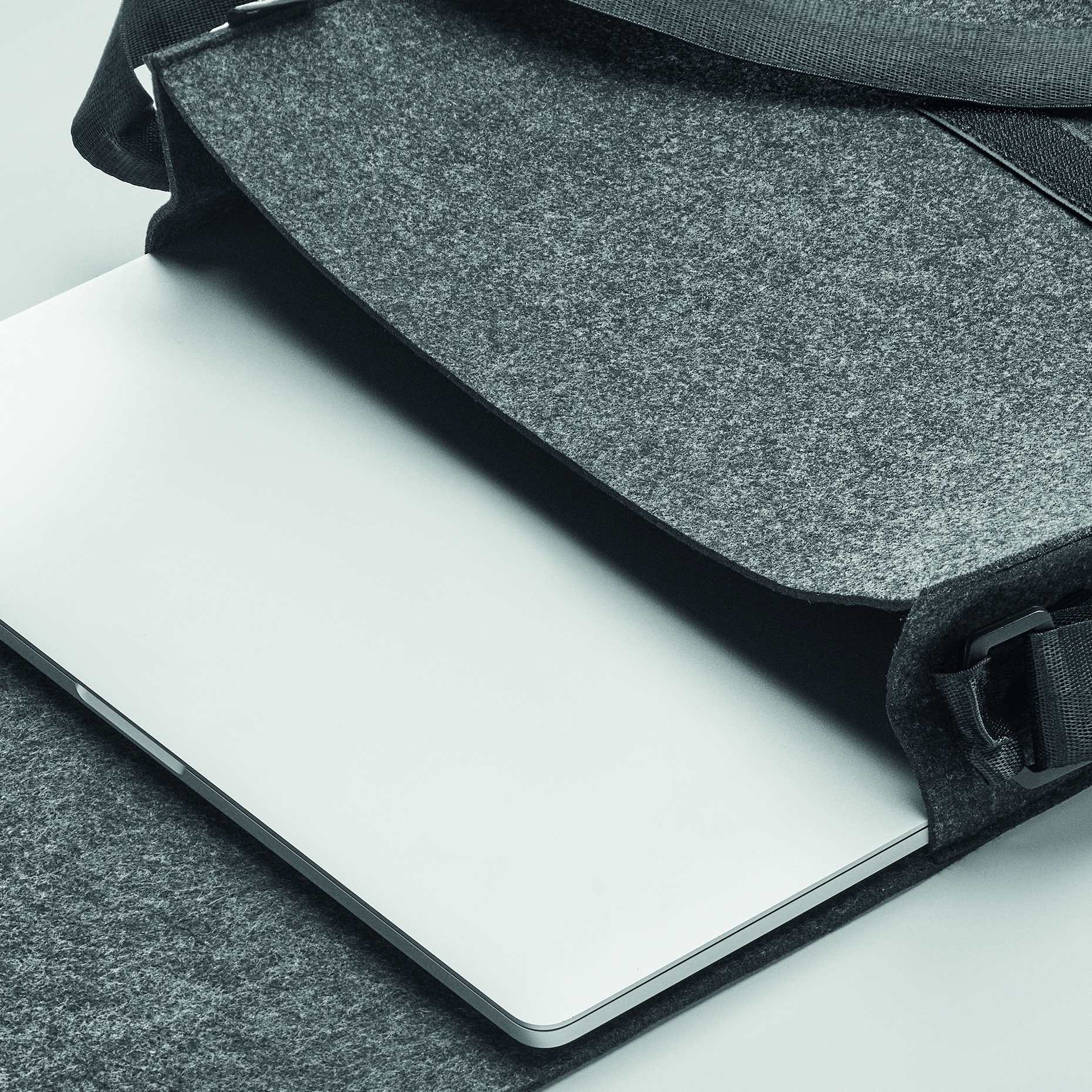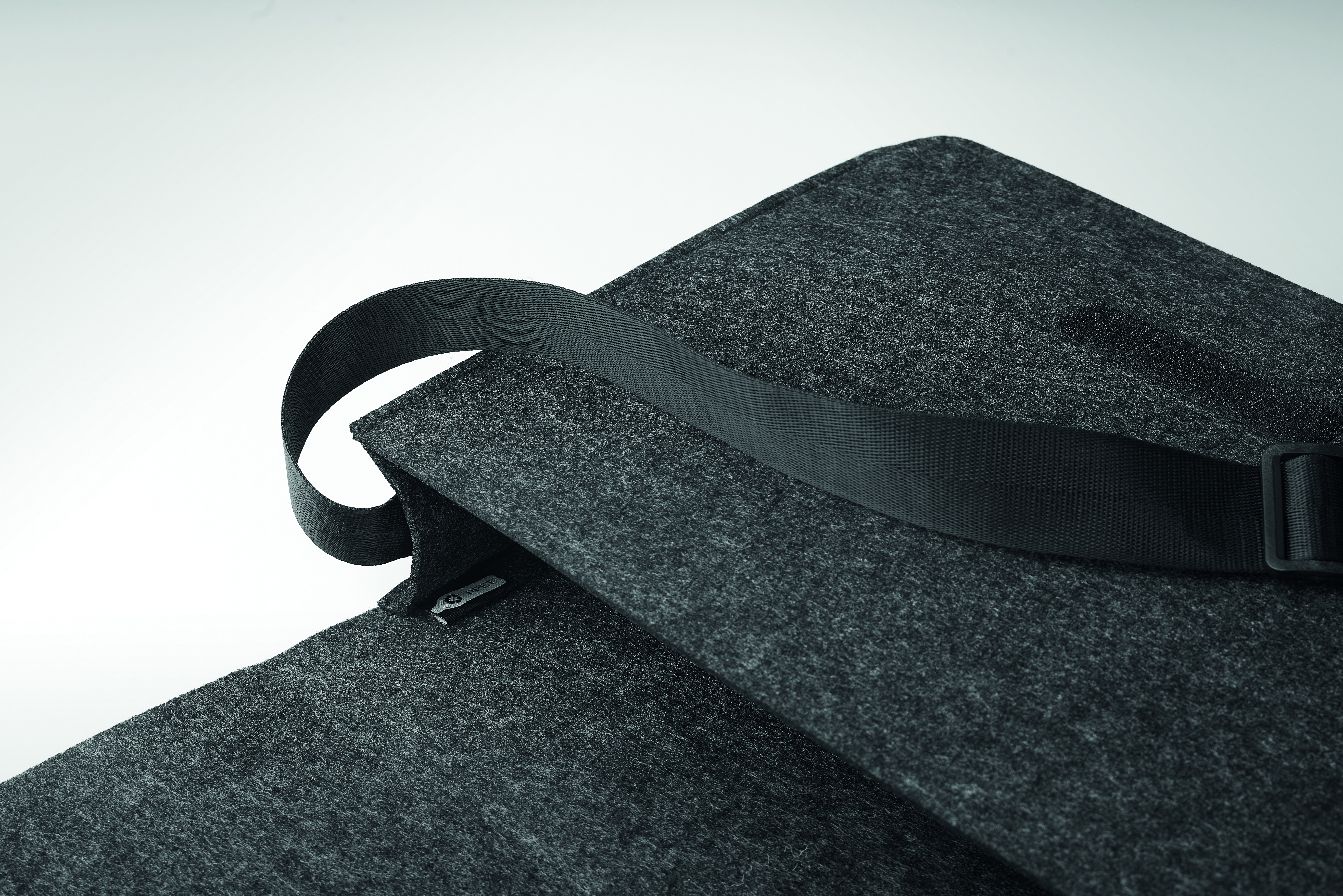 Filcowa torba listonoszka lub torba na laptopa RPET z zapięciem na rzep. Pasuje do 15-calowego laptopa.