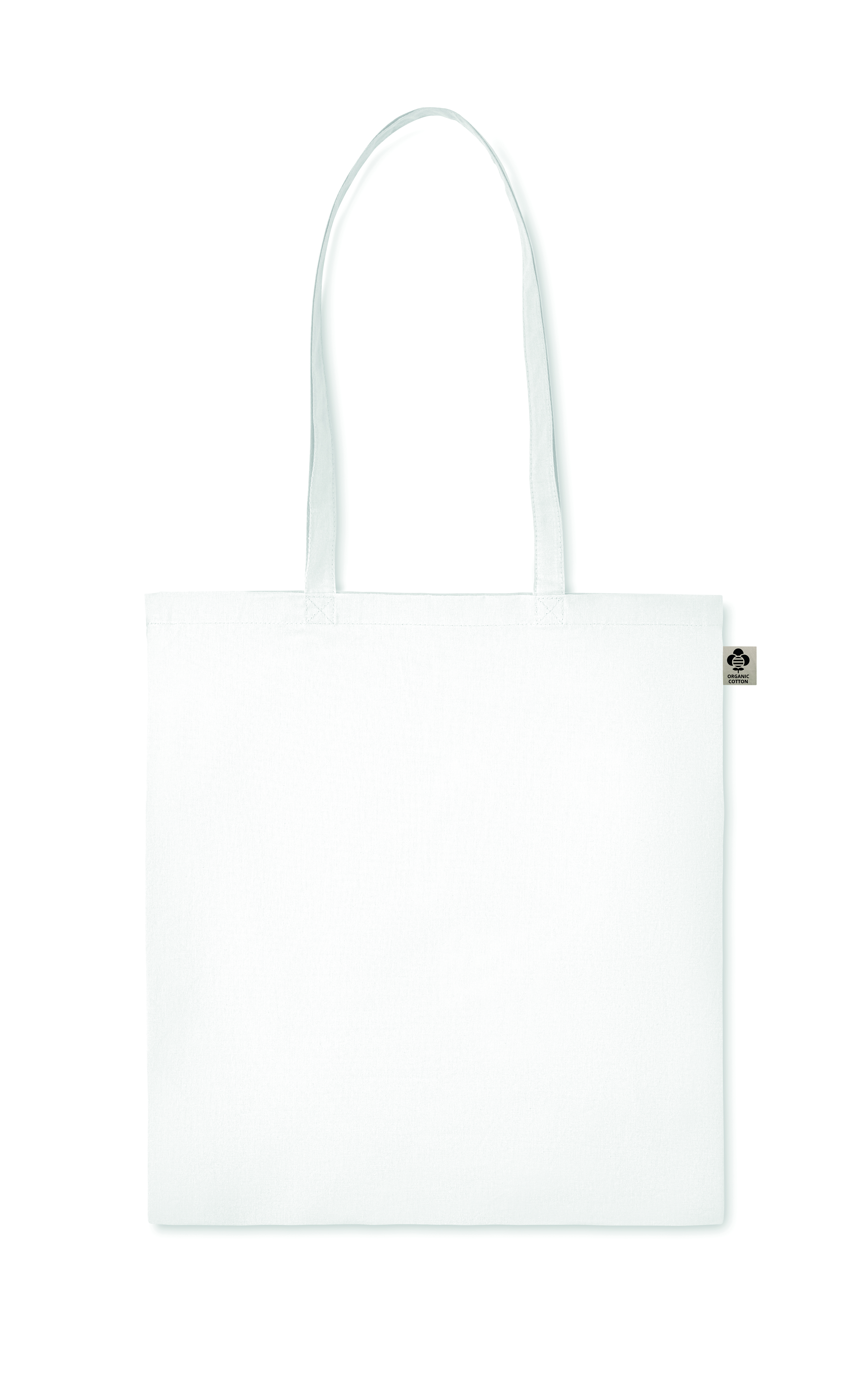 Torba na zakupy z bawełny organicznej z długimi uchwytami. Klasyczna torba na ramię przeznaczona do przenoszenia codziennych artykułów spożywczych lub innych przedmiotów. Noś torbę w rękach lub na ramieniu za pomocą długich uchwytów. Uszyta w 100% z naturalnej bawełny organicznej 140 gr / m².