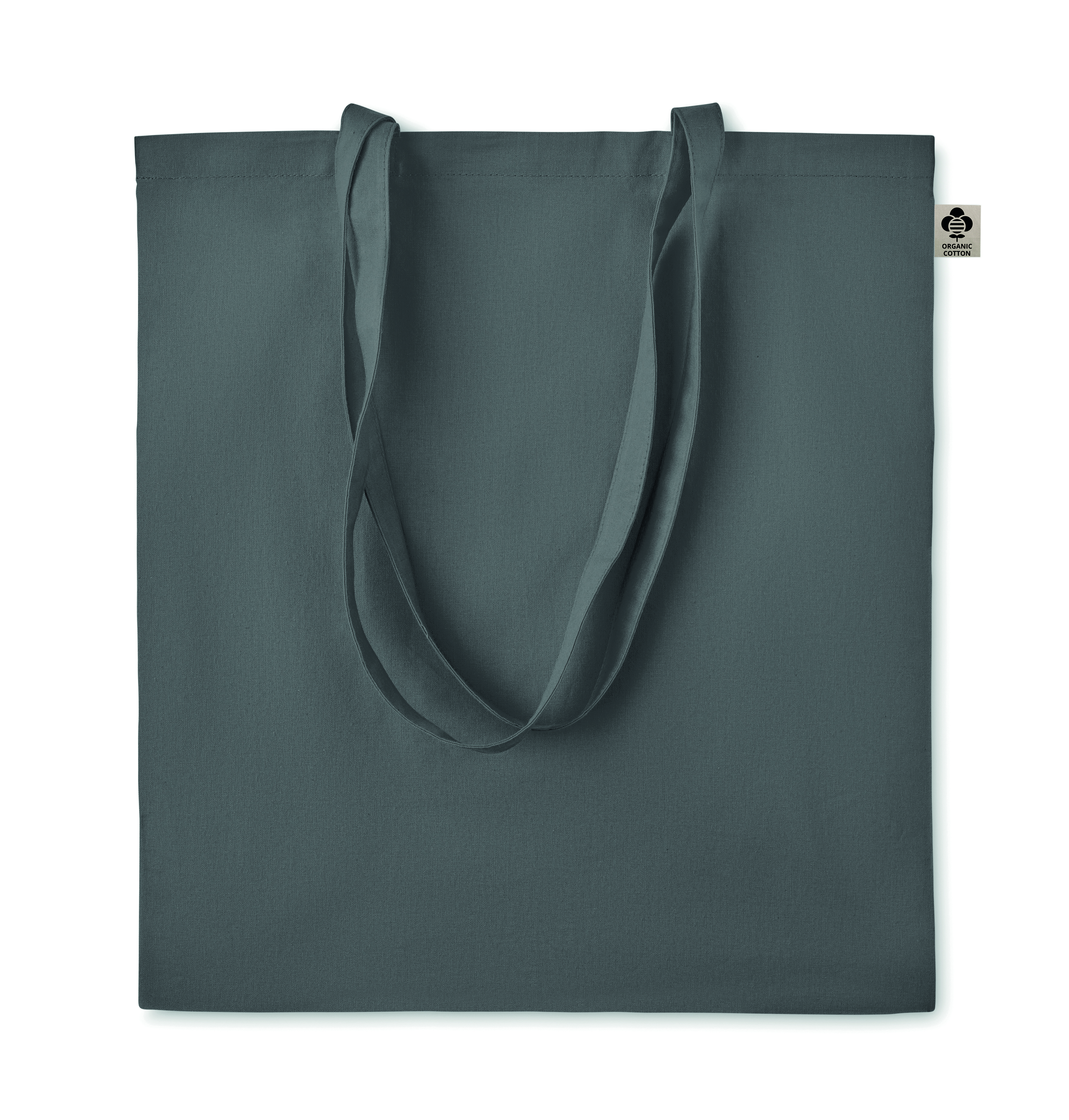 Torba na zakupy z bawełny organicznej z długimi uchwytami. Klasyczna torba na ramię przeznaczona do przenoszenia codziennych artykułów spożywczych lub innych przedmiotów. Noś torbę w rękach lub na ramieniu za pomocą długich uchwytów. Uszyta w 100% z naturalnej bawełny organicznej 140 gr / m².