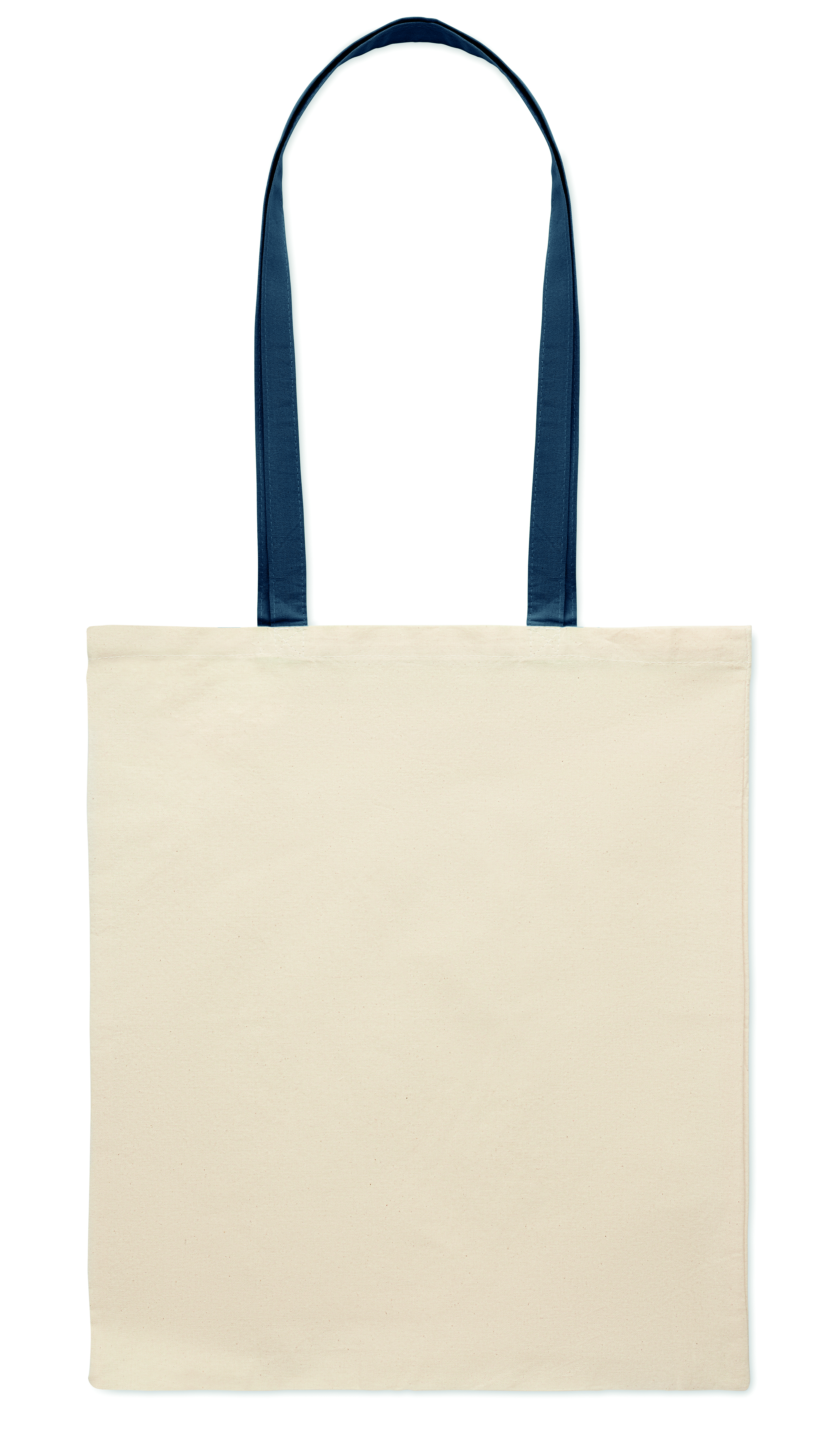 Torba na zakupy z długimi kolorowymi uchwytami z bawełny. 140 gr/m². Ta torba jest idealna na codzienne zakupy. Dostępna z różnokolorowymi uchwytami. Torbę można przewiesić przez ramię, gdy jest ciężka, aby mieć wolne ręce. Maks. obciążenie: 2,5 kg.