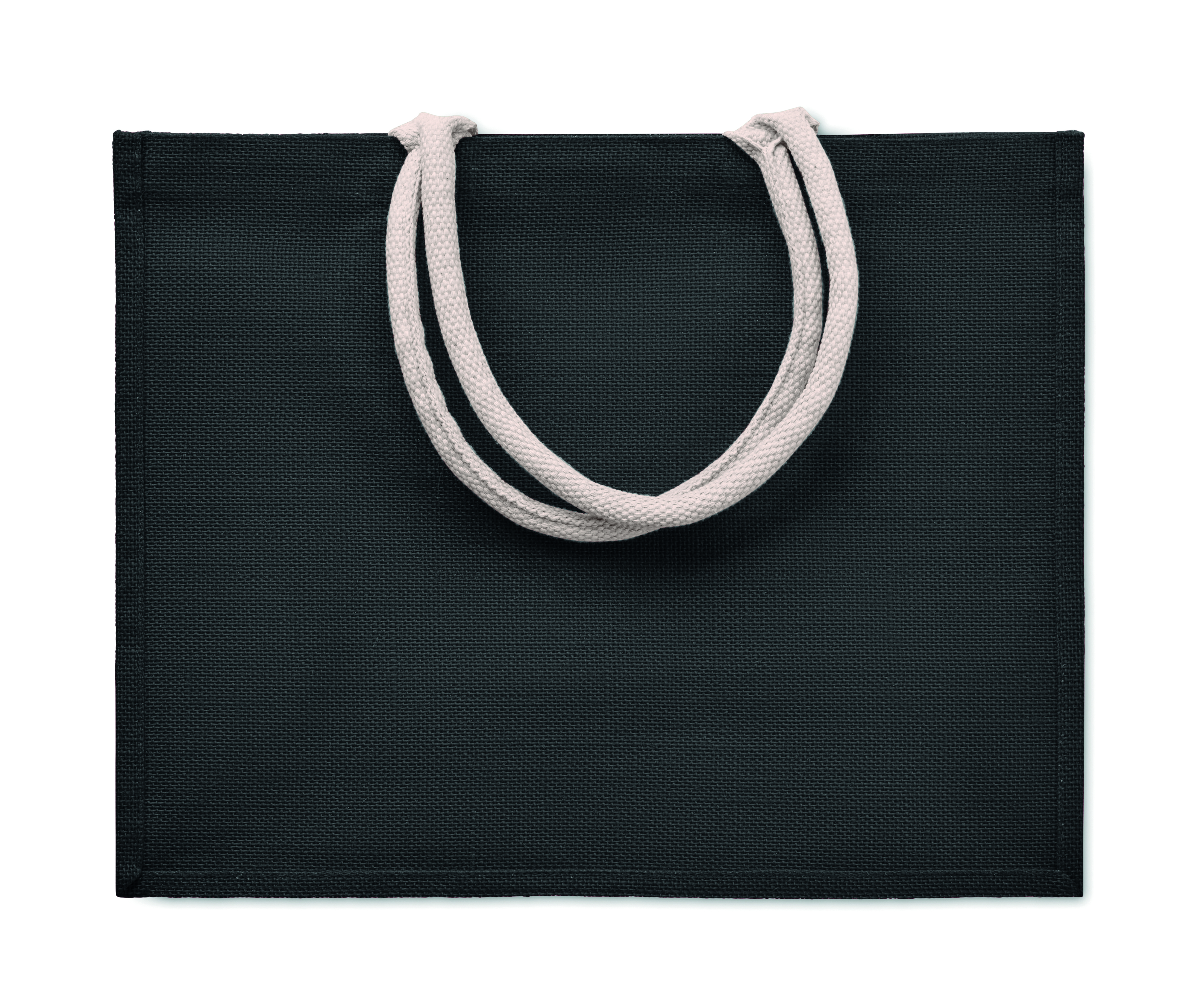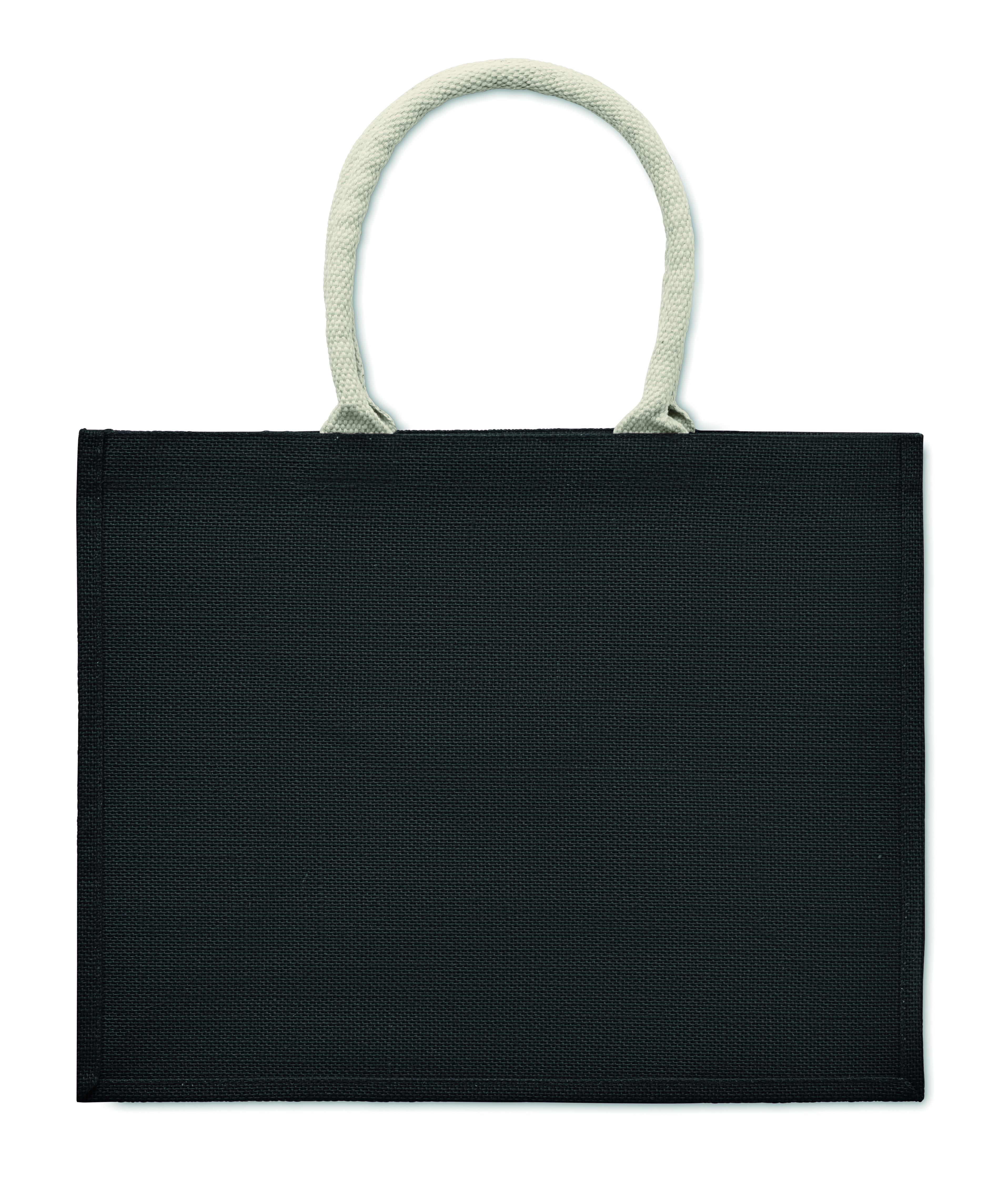 Laminowana jutowa torba plażowa lub na zakupy z bawełnianym uchwytem. Krótkie uchwyty.