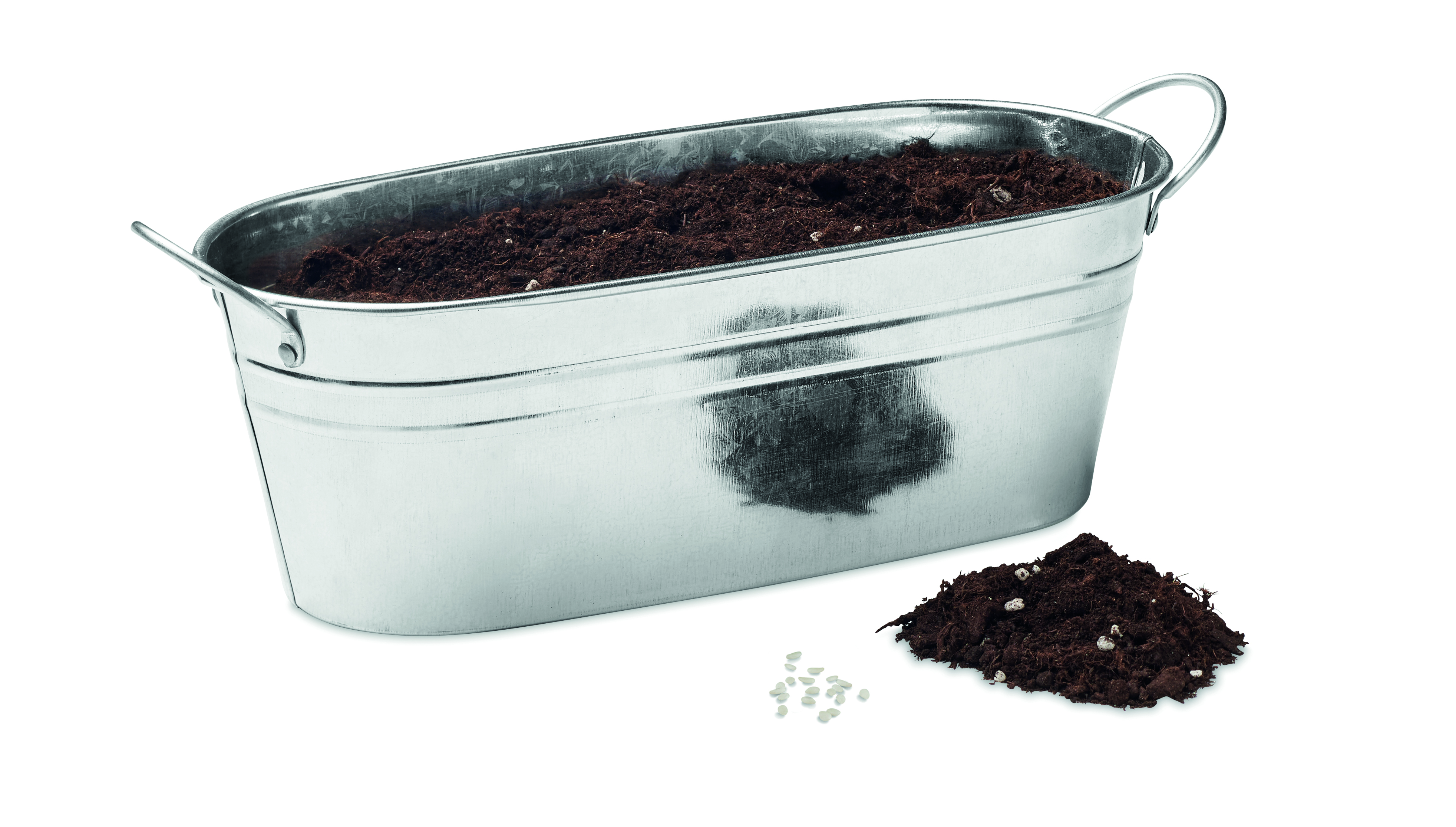 Cynkowa wanienka na rośliny z wyborem 3 nasion ziół wraz z kompostem ogrodowym. Wyprodukowano w UE.