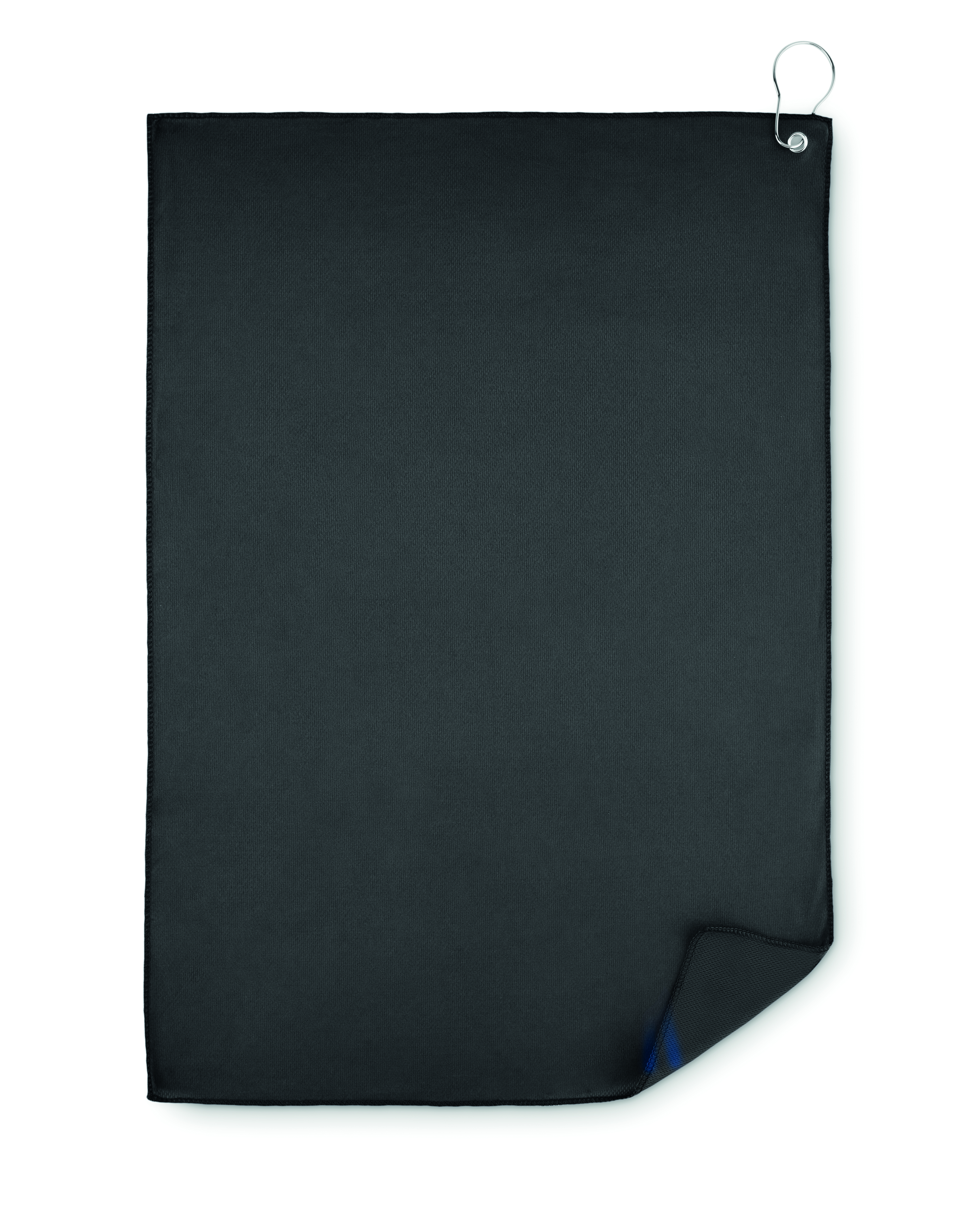 Ręcznik golfowy z poliestru RPET z metalową zawieszką. Rozmiar ręcznika: 40x60cm.