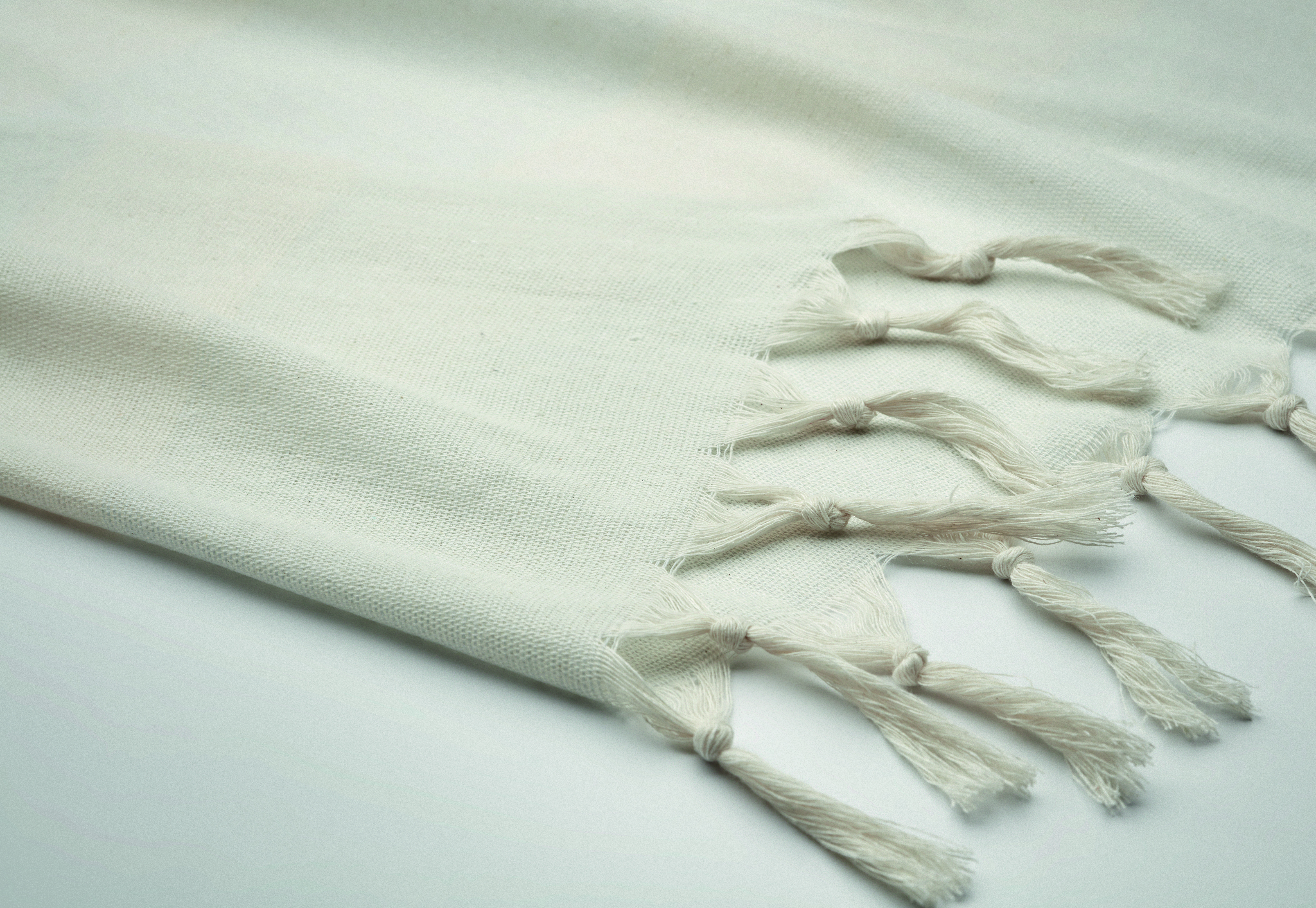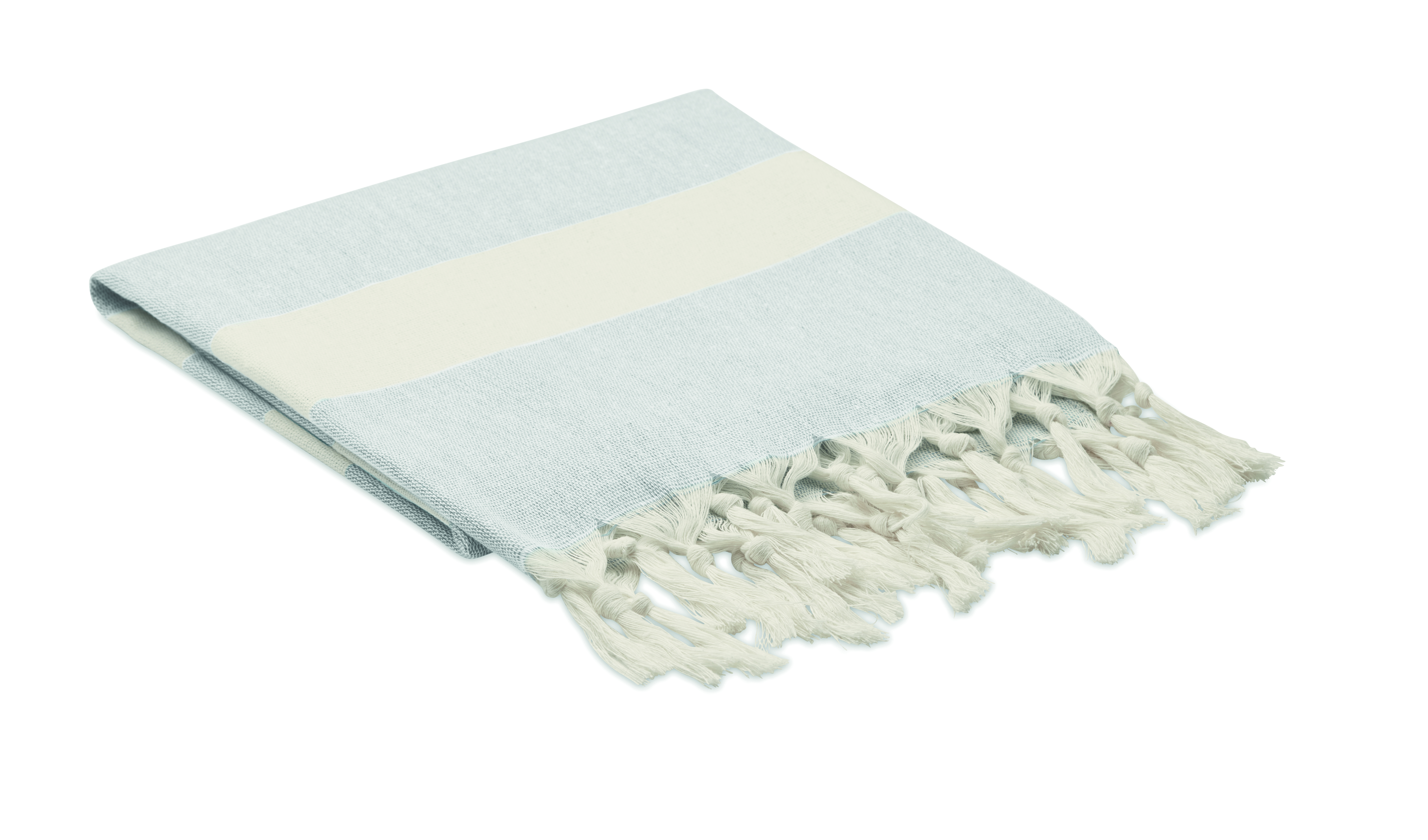 Koc Hamman / ręcznik plażowy z tkanin pochodzących z recyklingu: recyklingowanej bawełny i recyklingowanego poliestru (45%-55%). 140 gr/m².