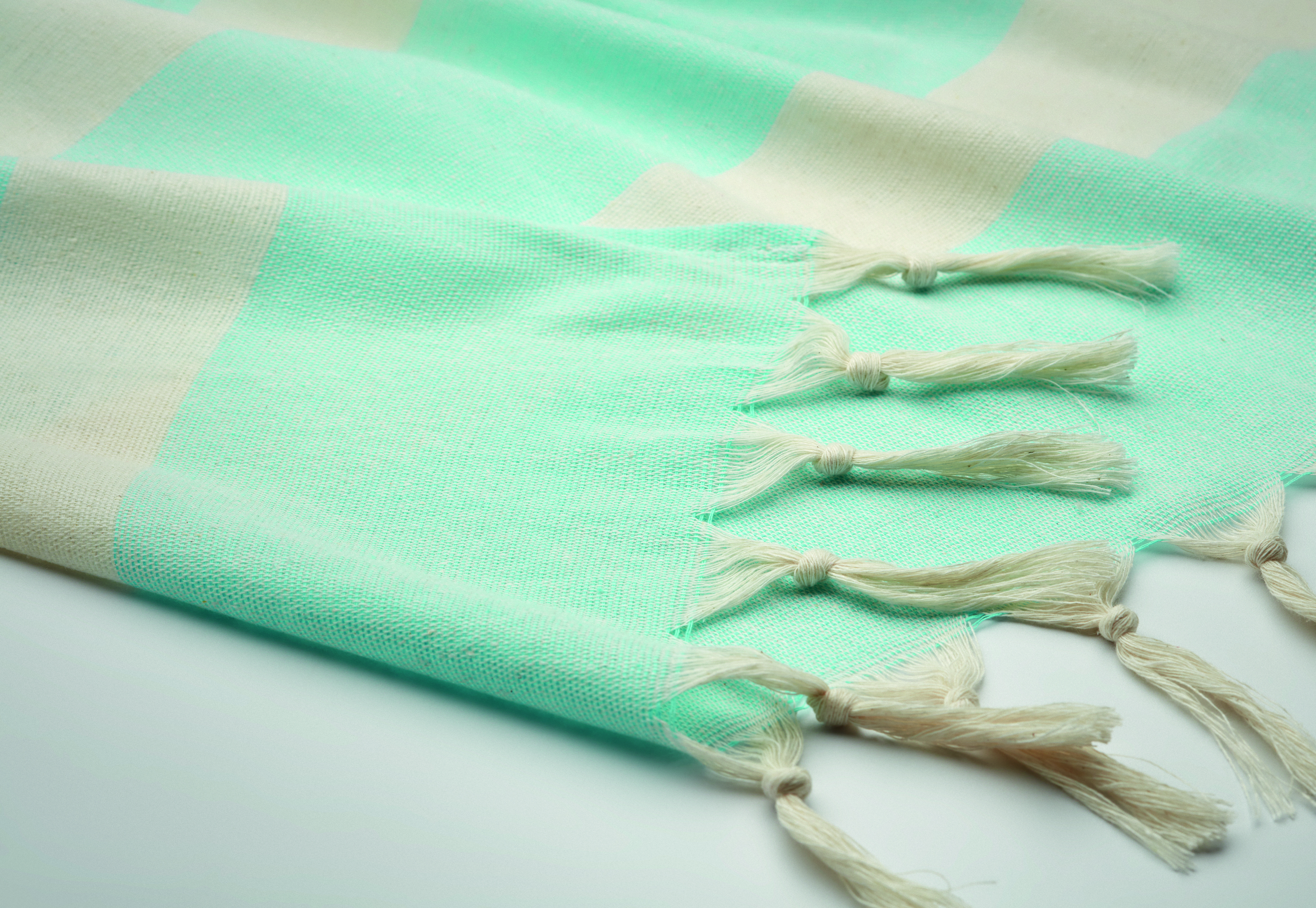 Koc Hamman / ręcznik plażowy z tkanin pochodzących z recyklingu: recyklingowanej bawełny i recyklingowanego poliestru (45%-55%). 140 gr/m².