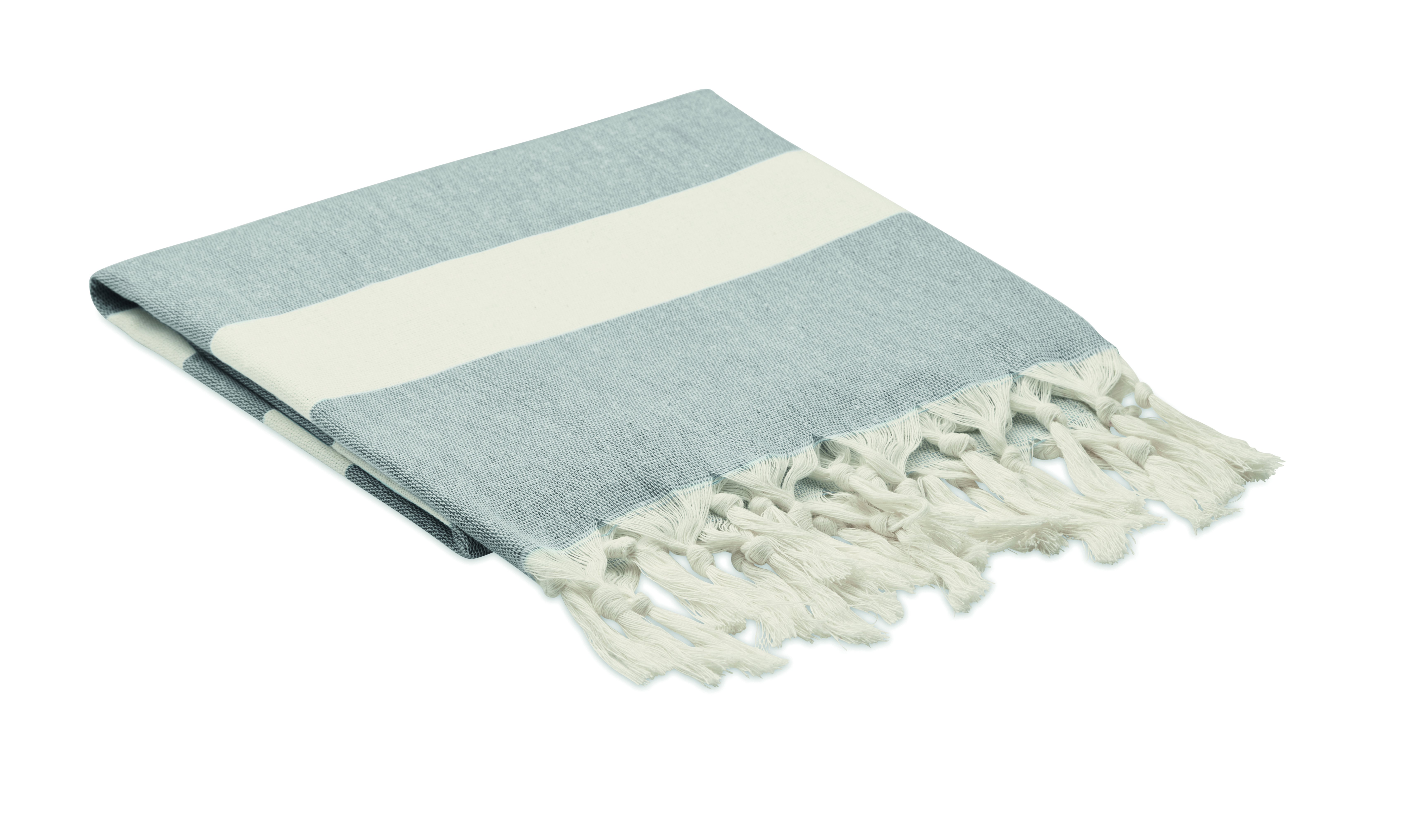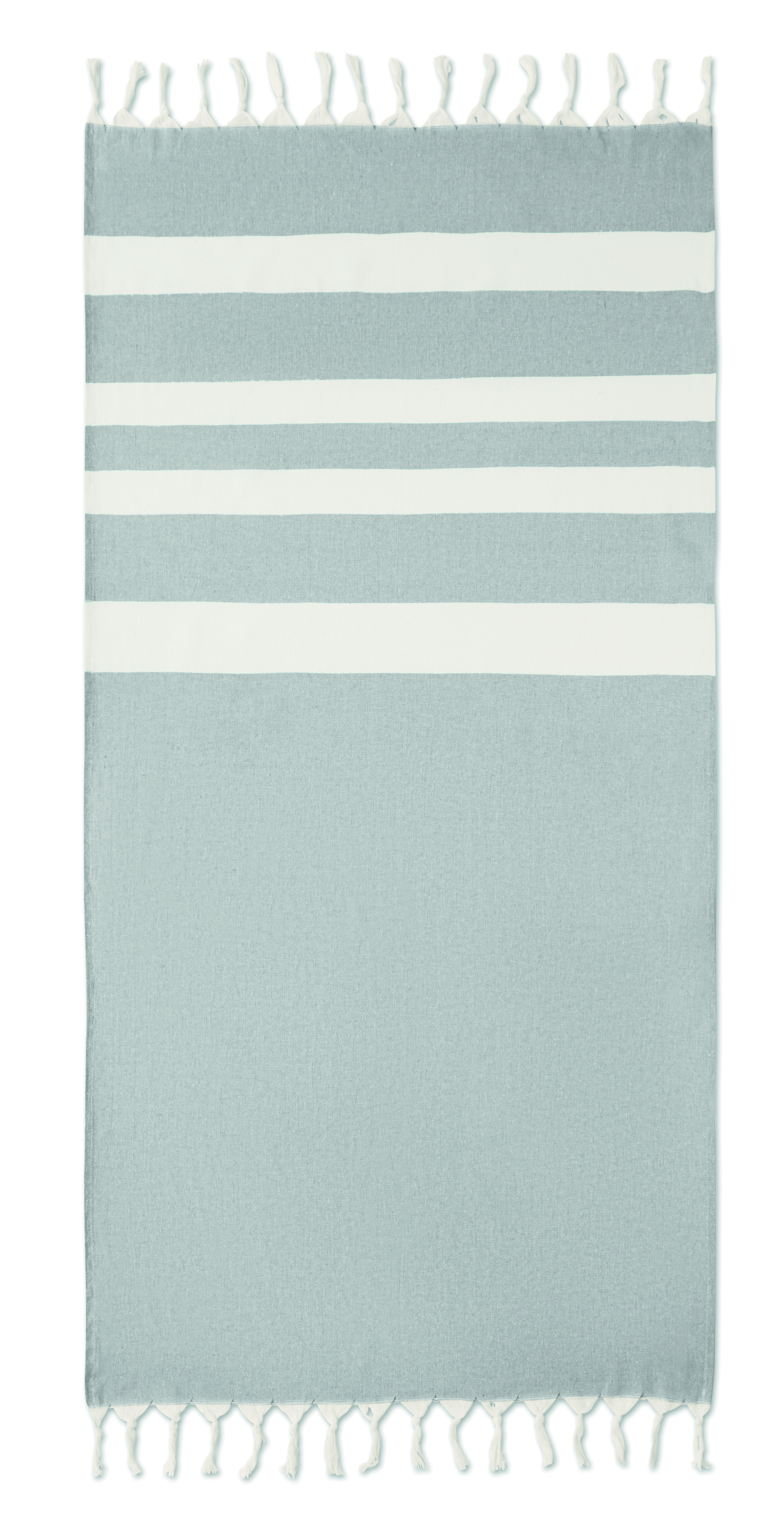 Koc Hamman / ręcznik plażowy z tkanin pochodzących z recyklingu: recyklingowanej bawełny i recyklingowanego poliestru (45%-55%). 140 gr/m².