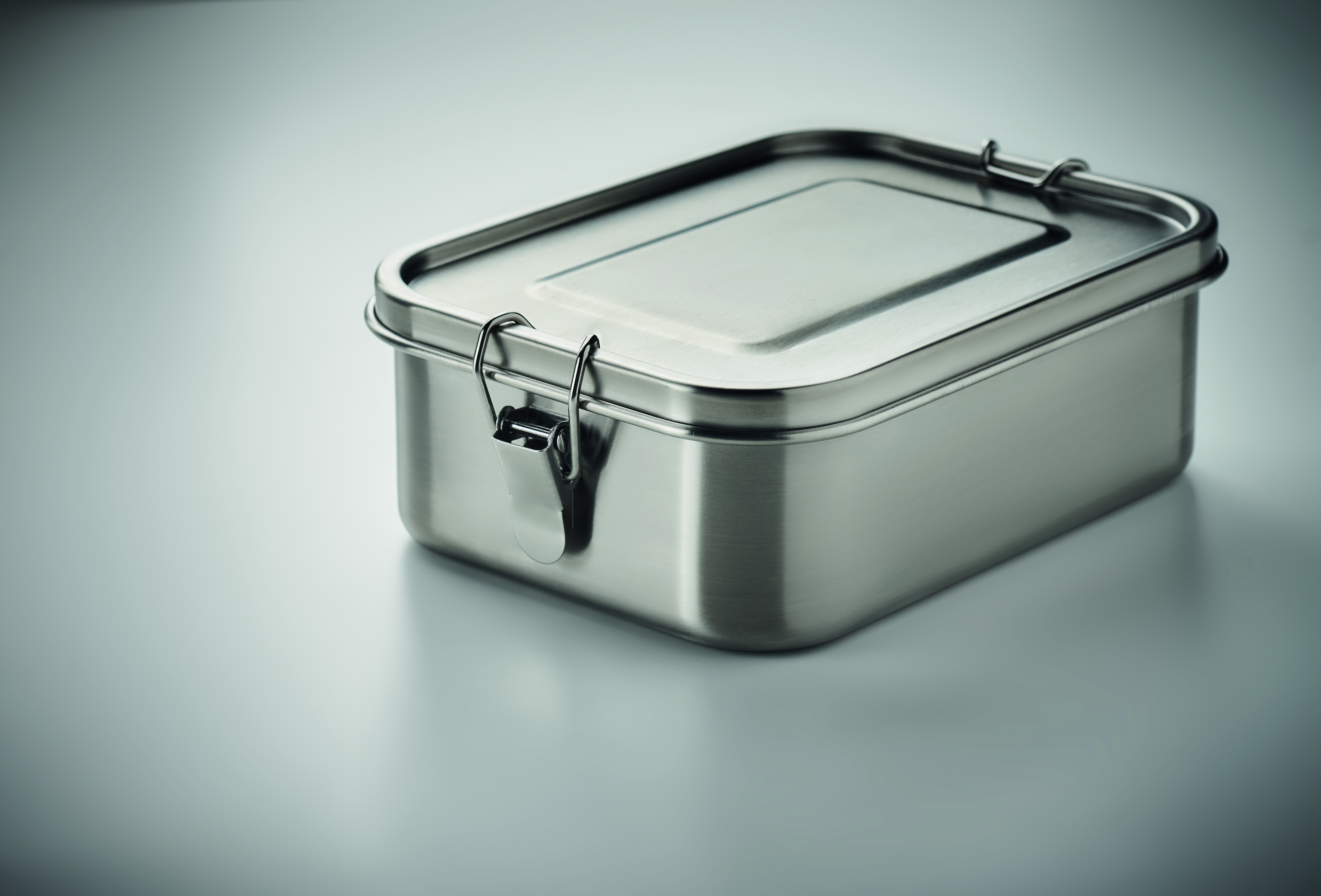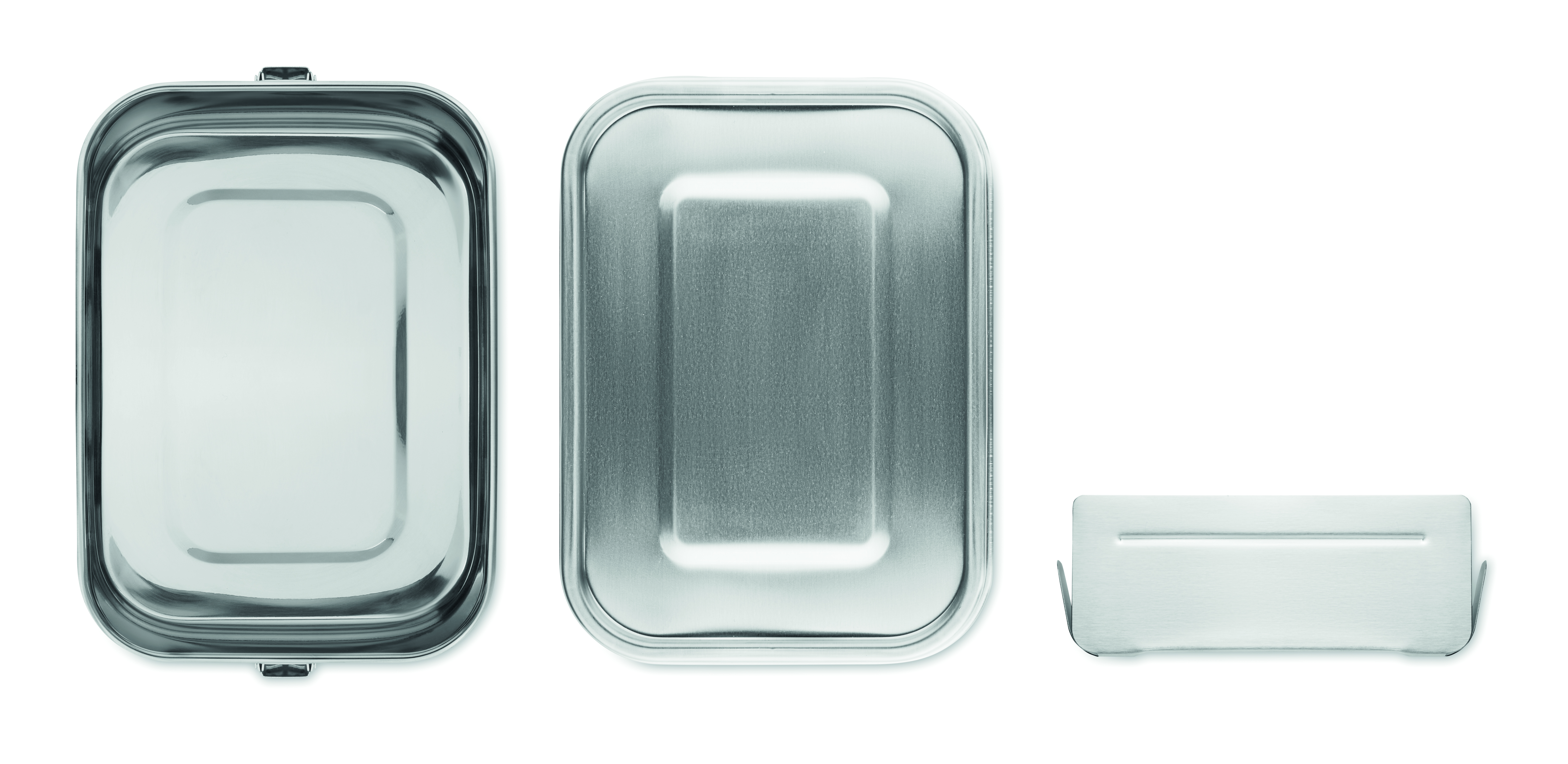 Pudełko na lunch ze stali nierdzewnej z mocnymi i bezpiecznymi klamrami bocznymi. Zawiera wewnętrzną przegródkę. Pojemność: 1200 ml.