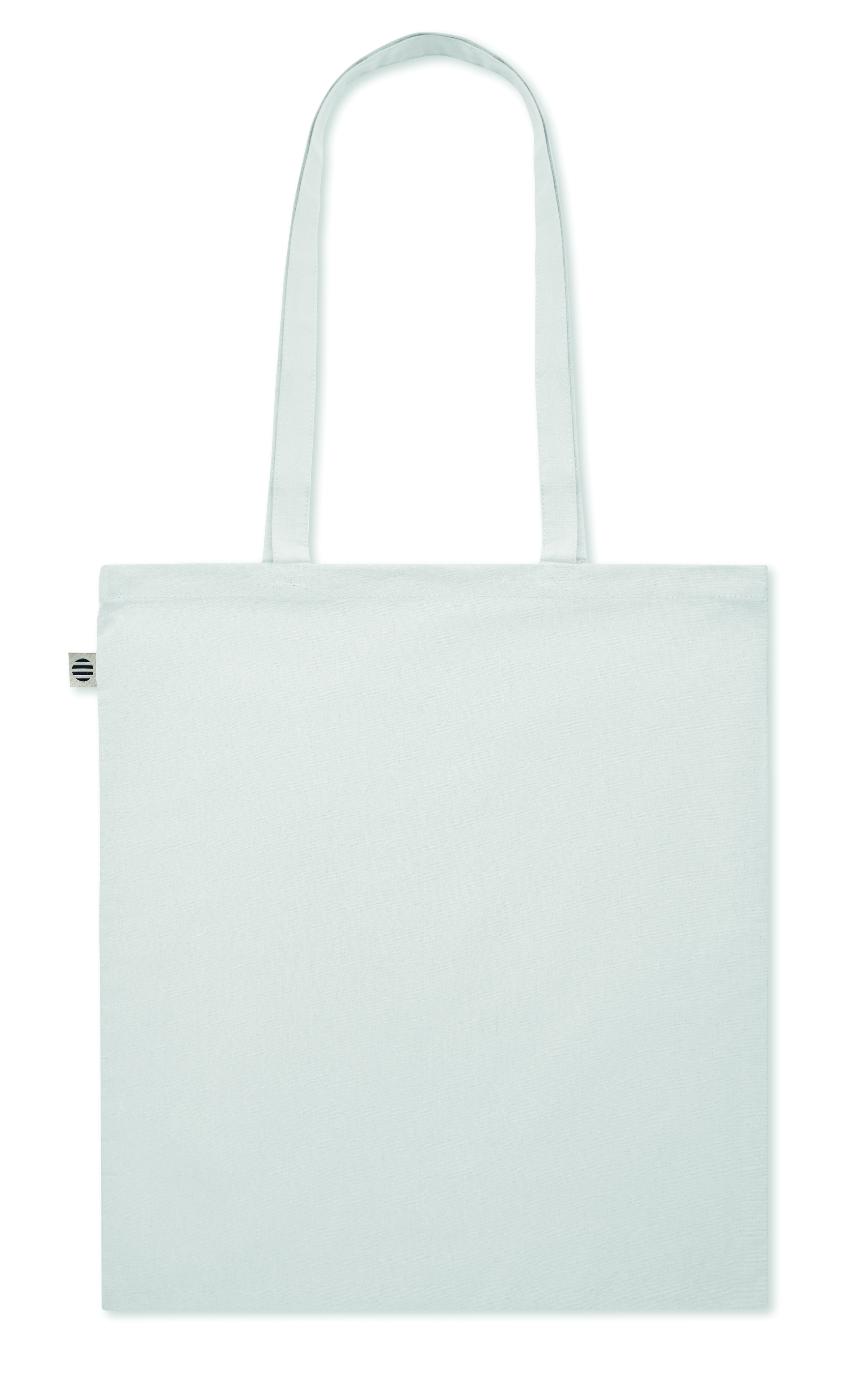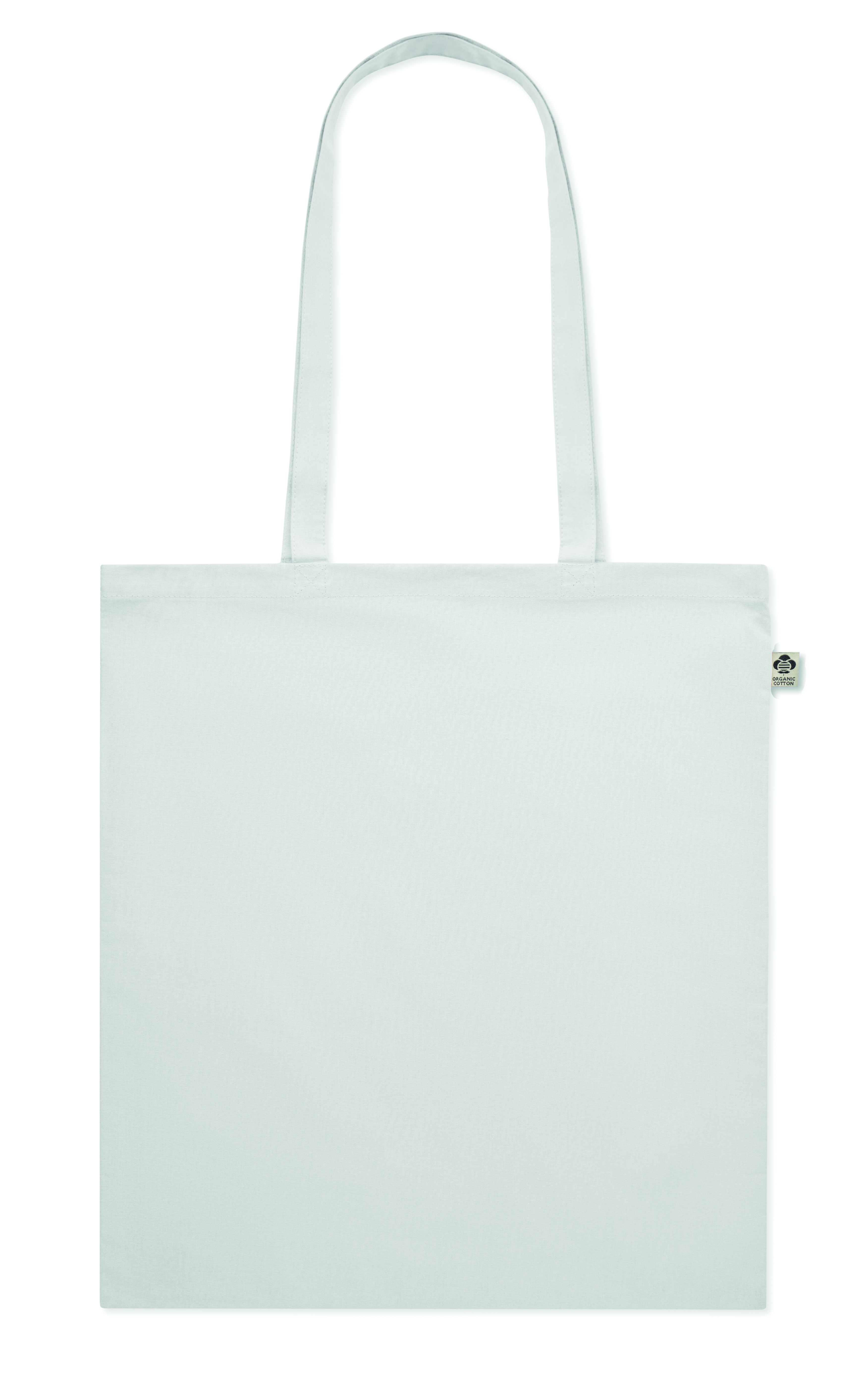 Torba na zakupy z bawełny organicznej z długimi uchwytami. 180 gr/m². Wyprodukowana zgodnie z certyfikowanym standardem dotyczącym stosowania szkodliwych substancji w tekstyliach.