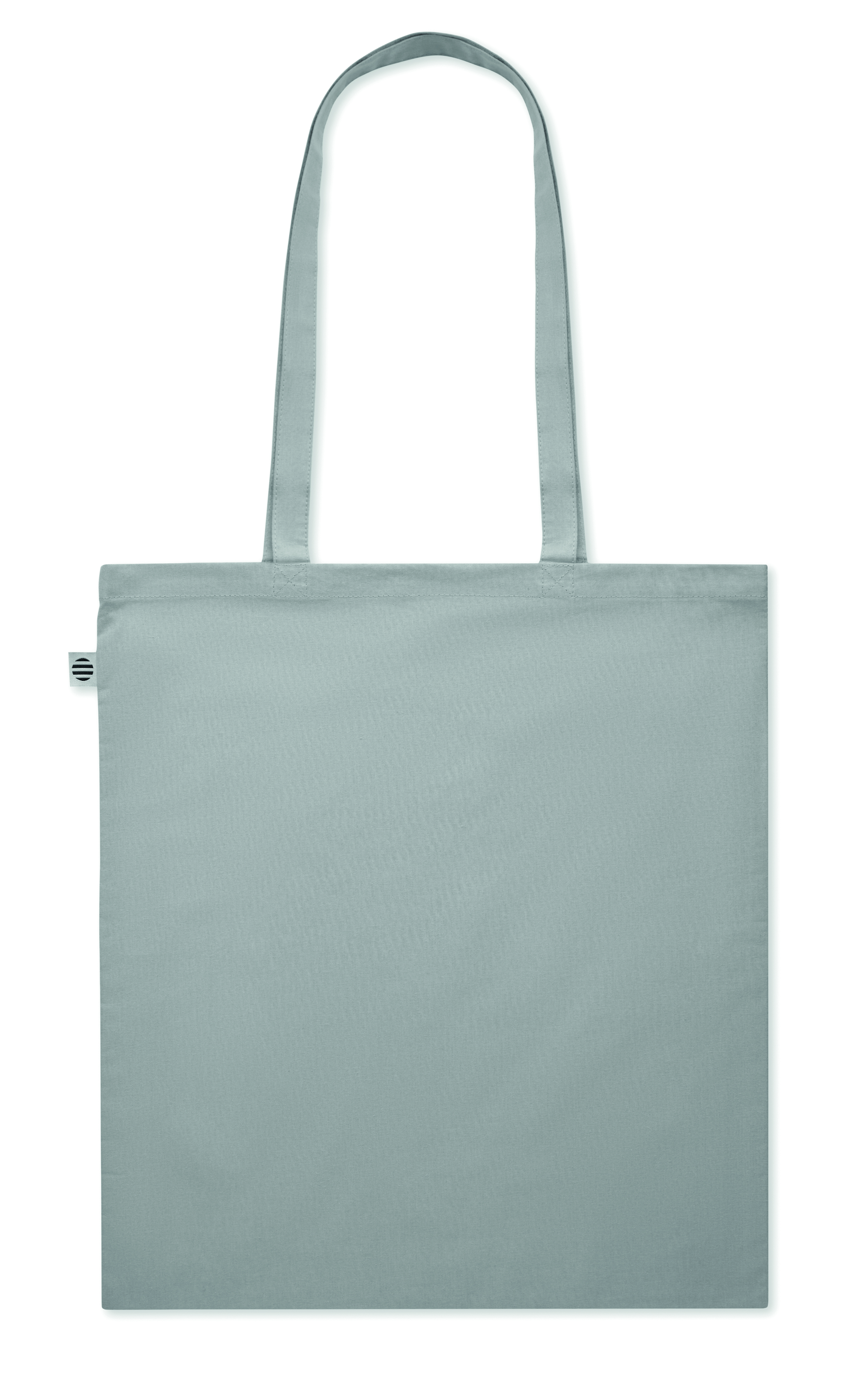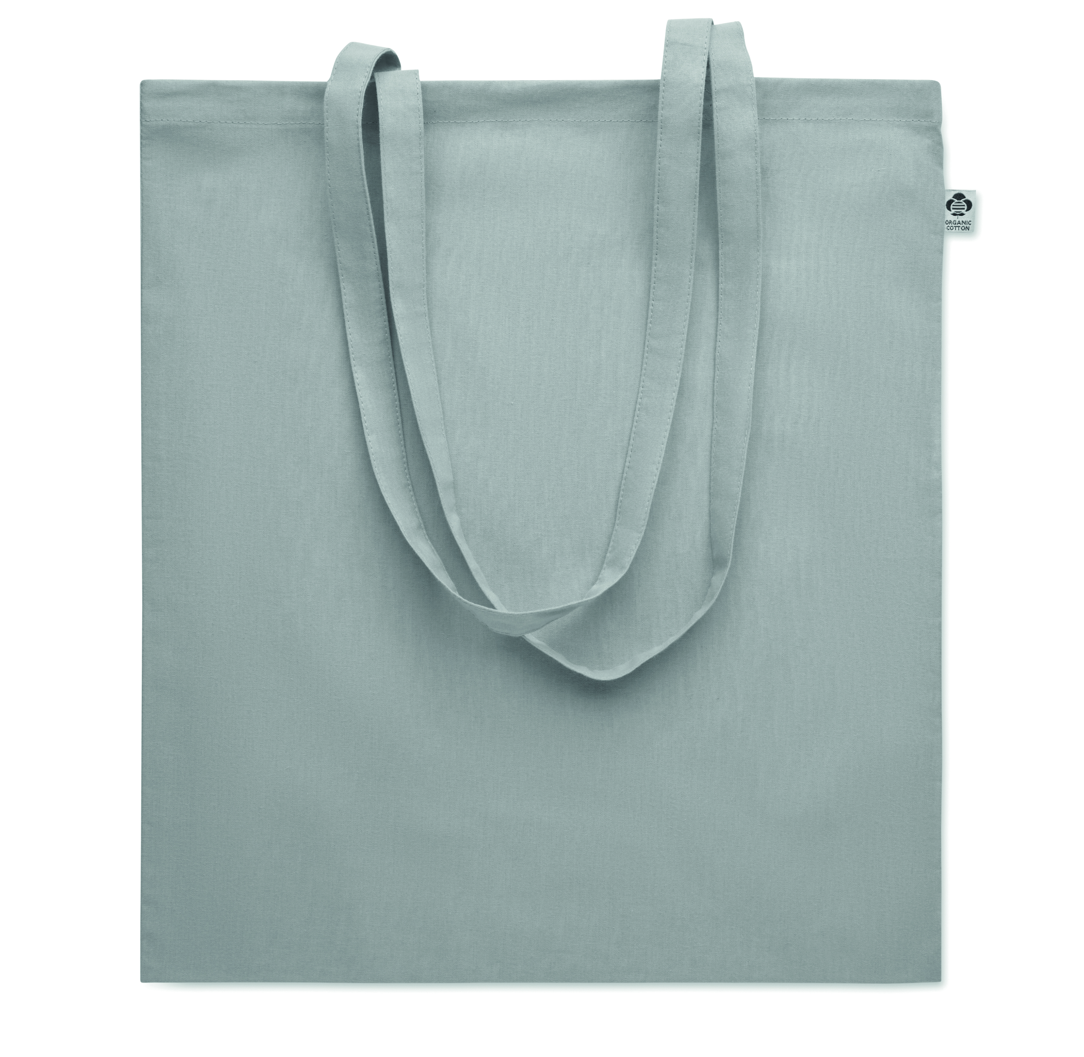 Torba na zakupy z bawełny organicznej z długimi uchwytami. 180 gr/m². Wyprodukowana zgodnie z certyfikowanym standardem dotyczącym stosowania szkodliwych substancji w tekstyliach.