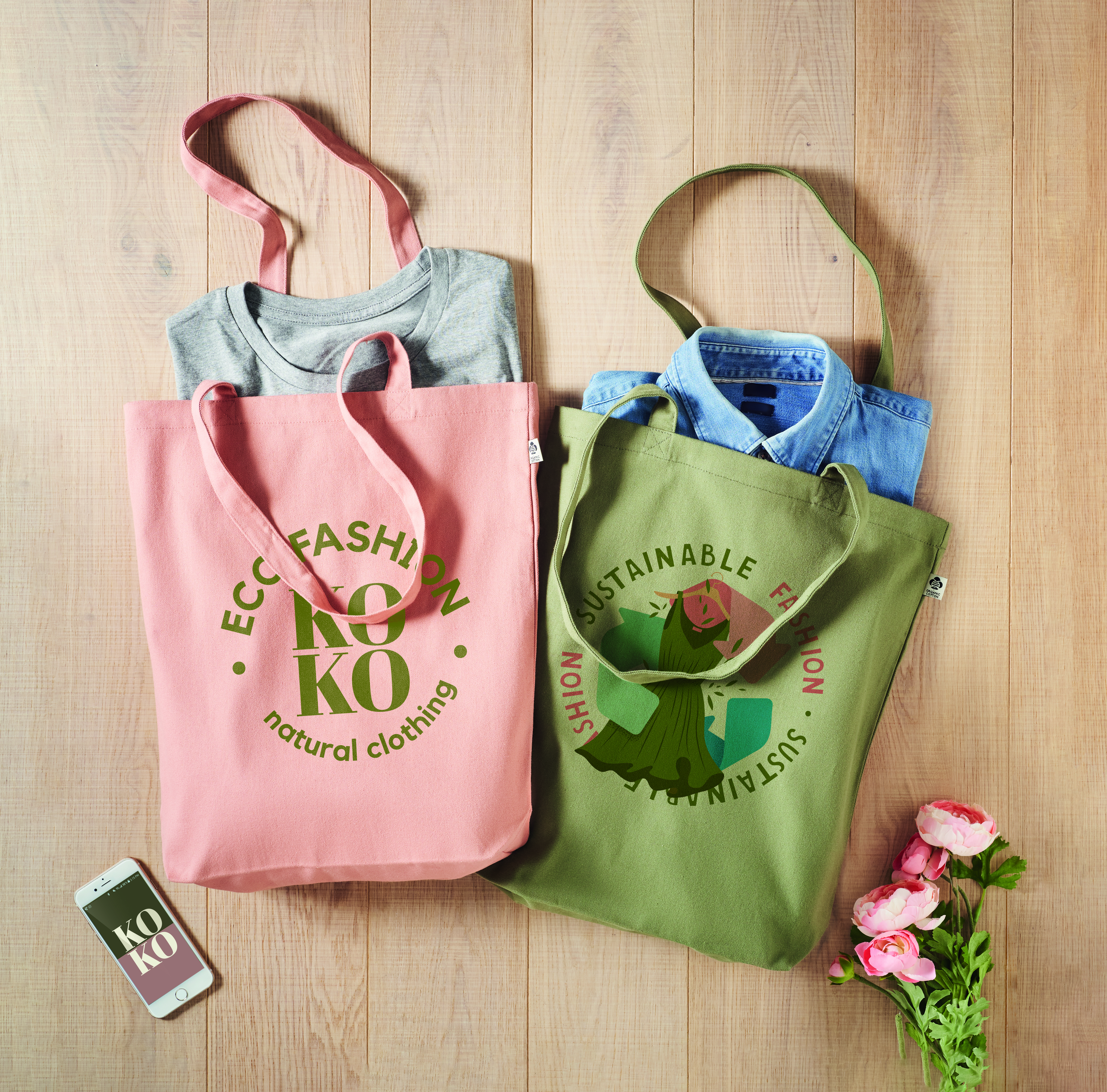 Płócienna torba na zakupy z długimi uchwytami. 270 gr/m². Wykonana z bawełny organicznej.