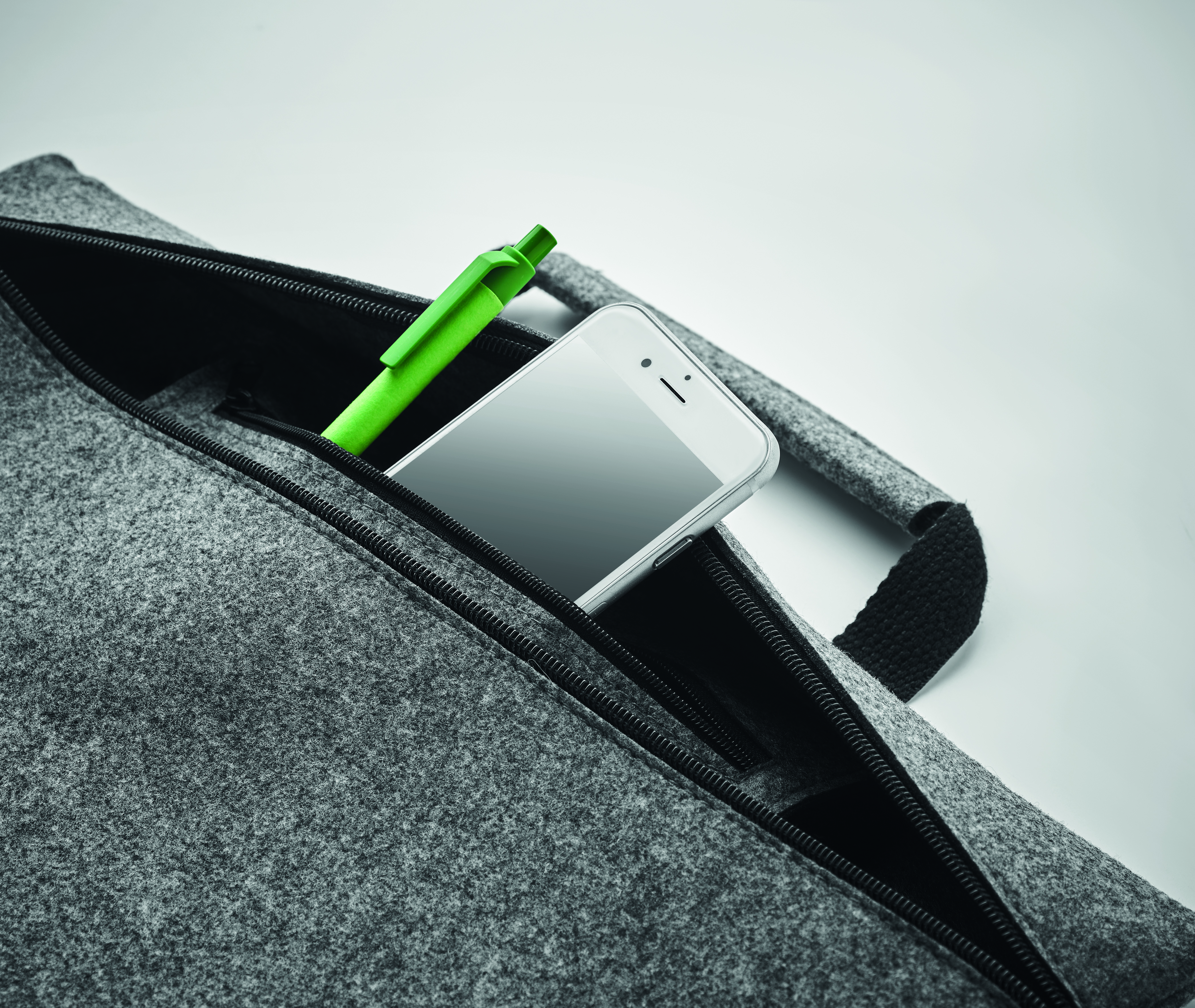 Filcowa torba RPET na laptopa 15 cali z główną komorą zapinaną na zamek błyskawiczny i z wewnętrzną kieszenią.