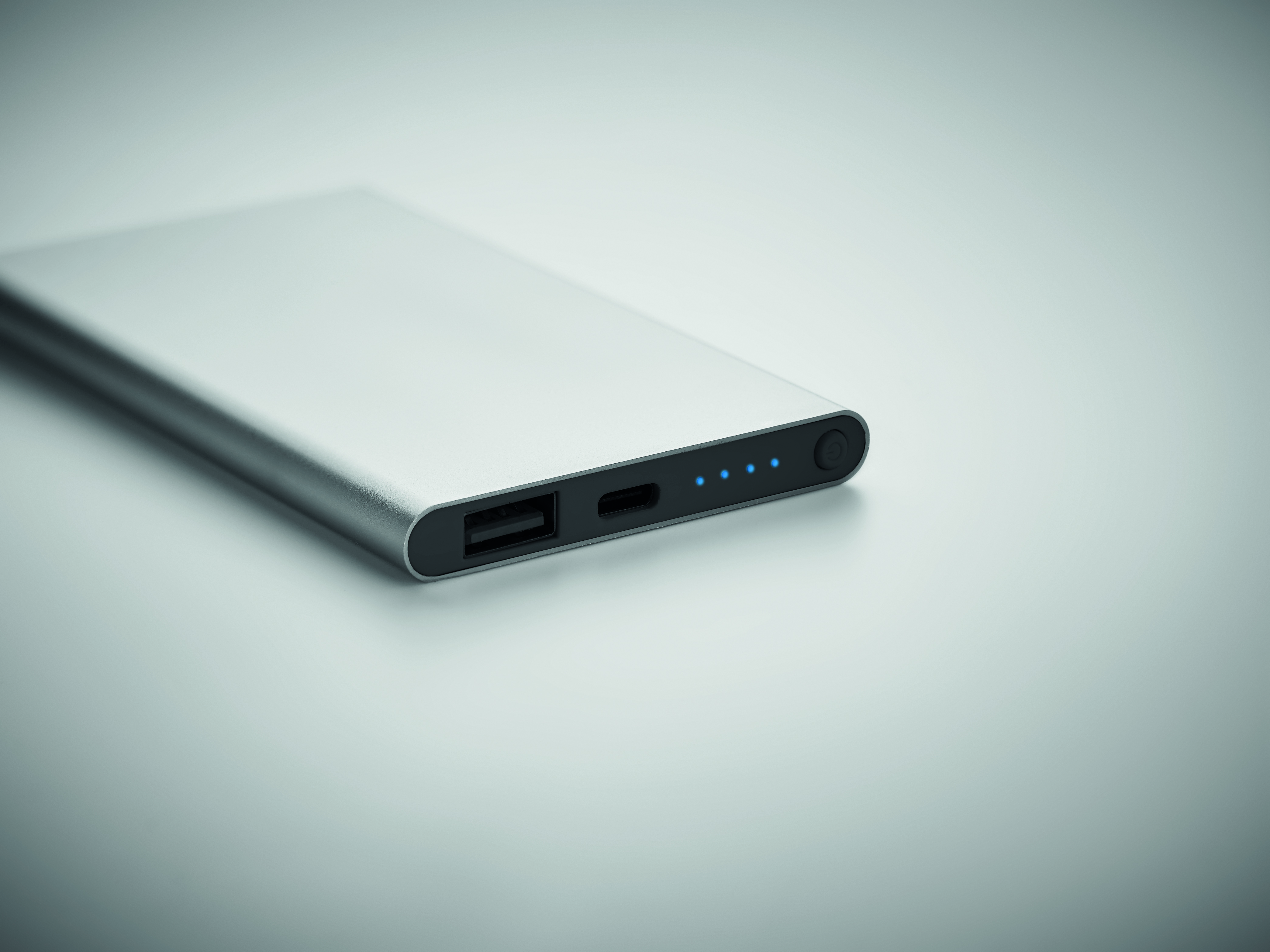 Power bank o pojemności 4000 mAh wykonany z aluminium pochodzącego z recyklingu. Prąd wyjściowy DC5V/2A. Zawiera lampkę kontrolną i kabel USB z wejściem/wyjściem typu C: Typ C.