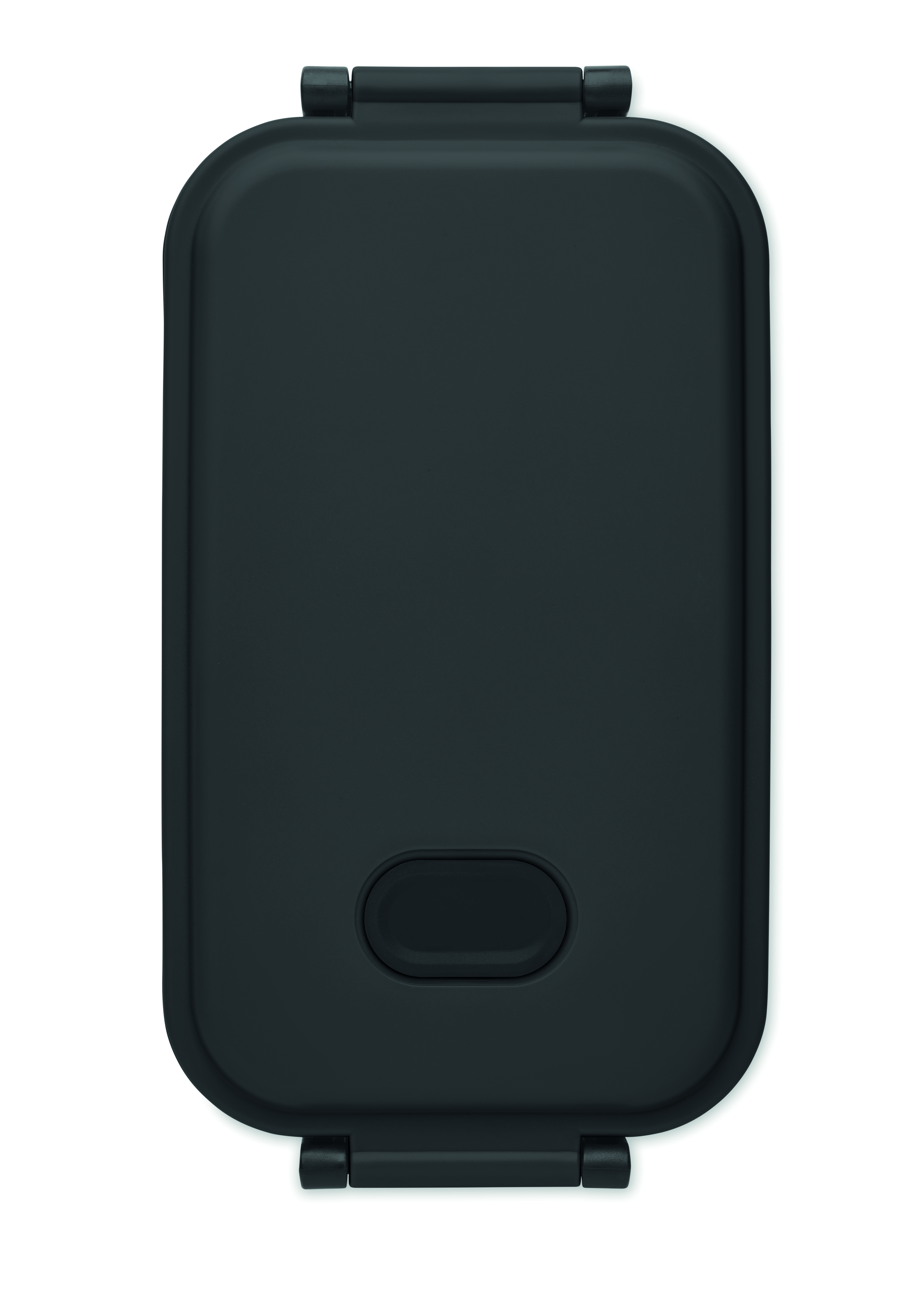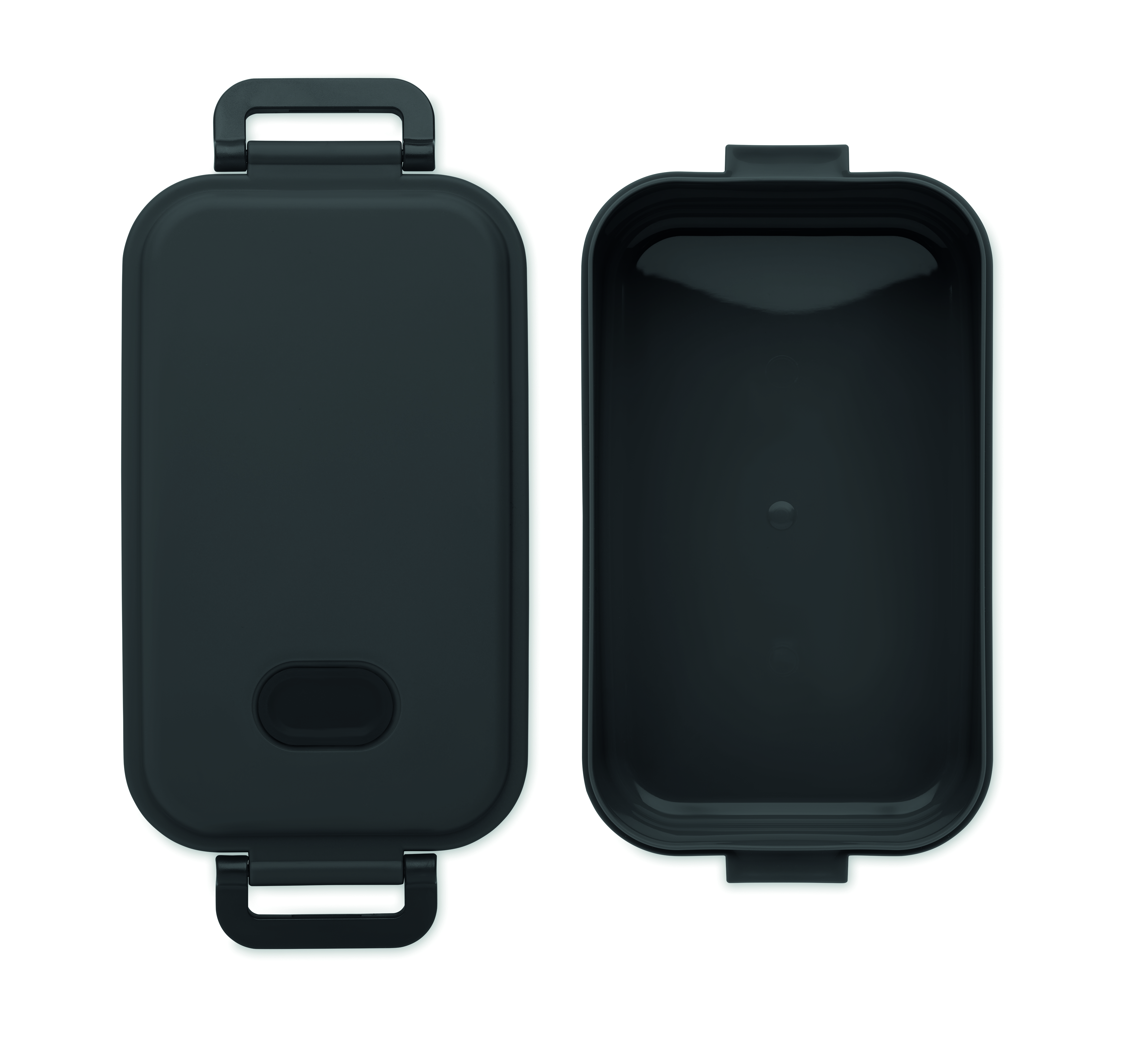 Lunch box z PP ze szczelną pokrywą, silikonowym zaworem i dwoma bocznymi klamrami. Pojemność: 800 ml.