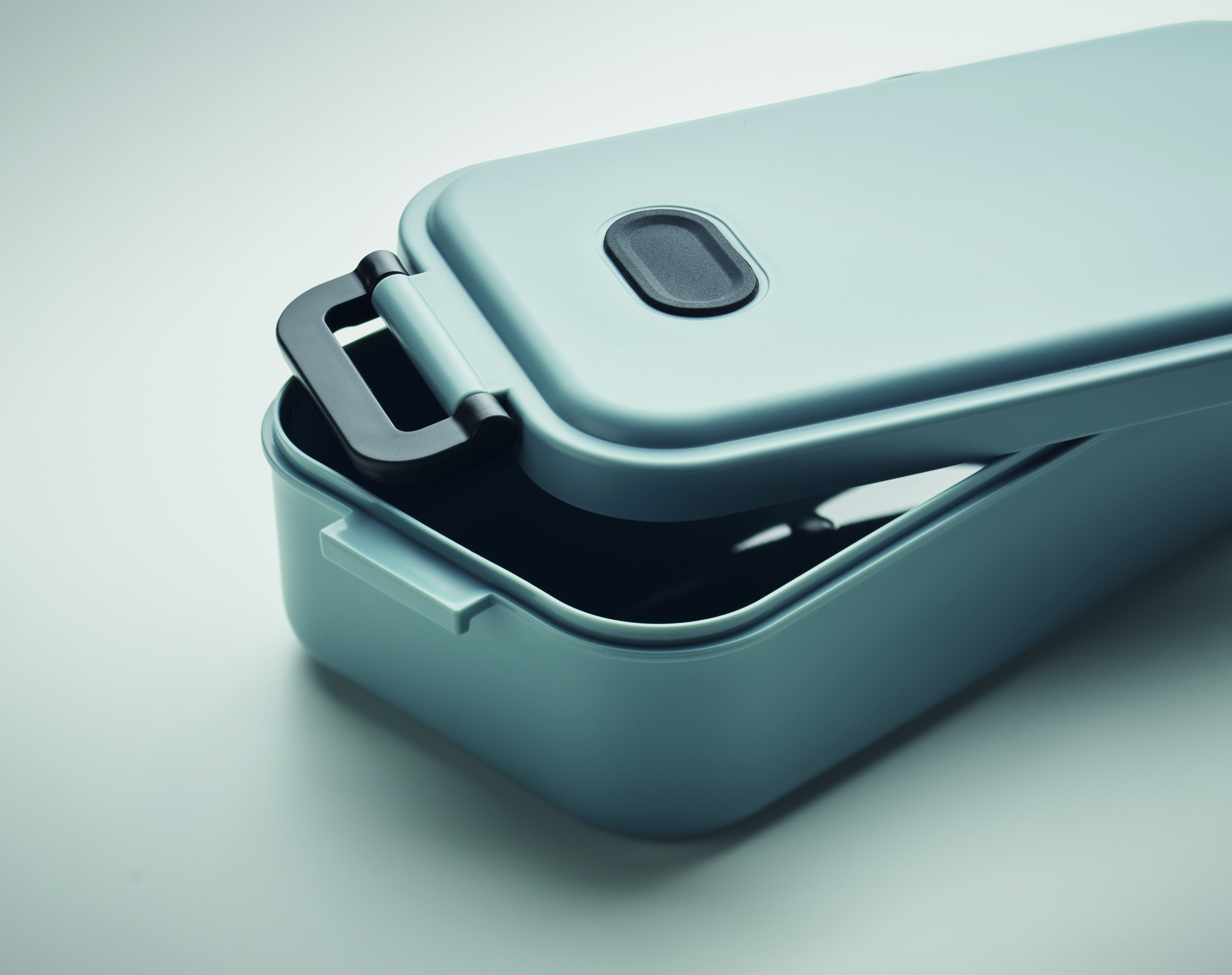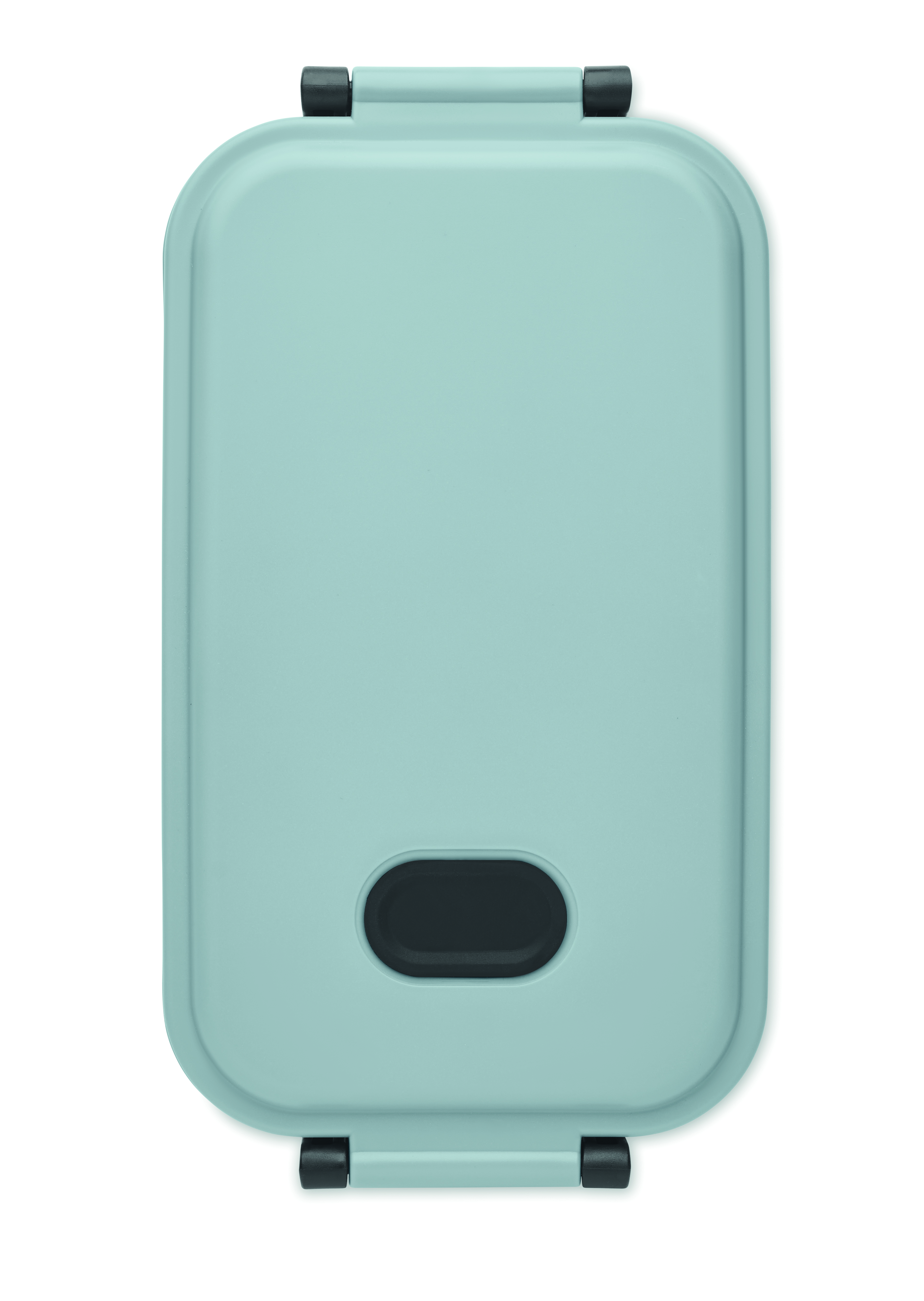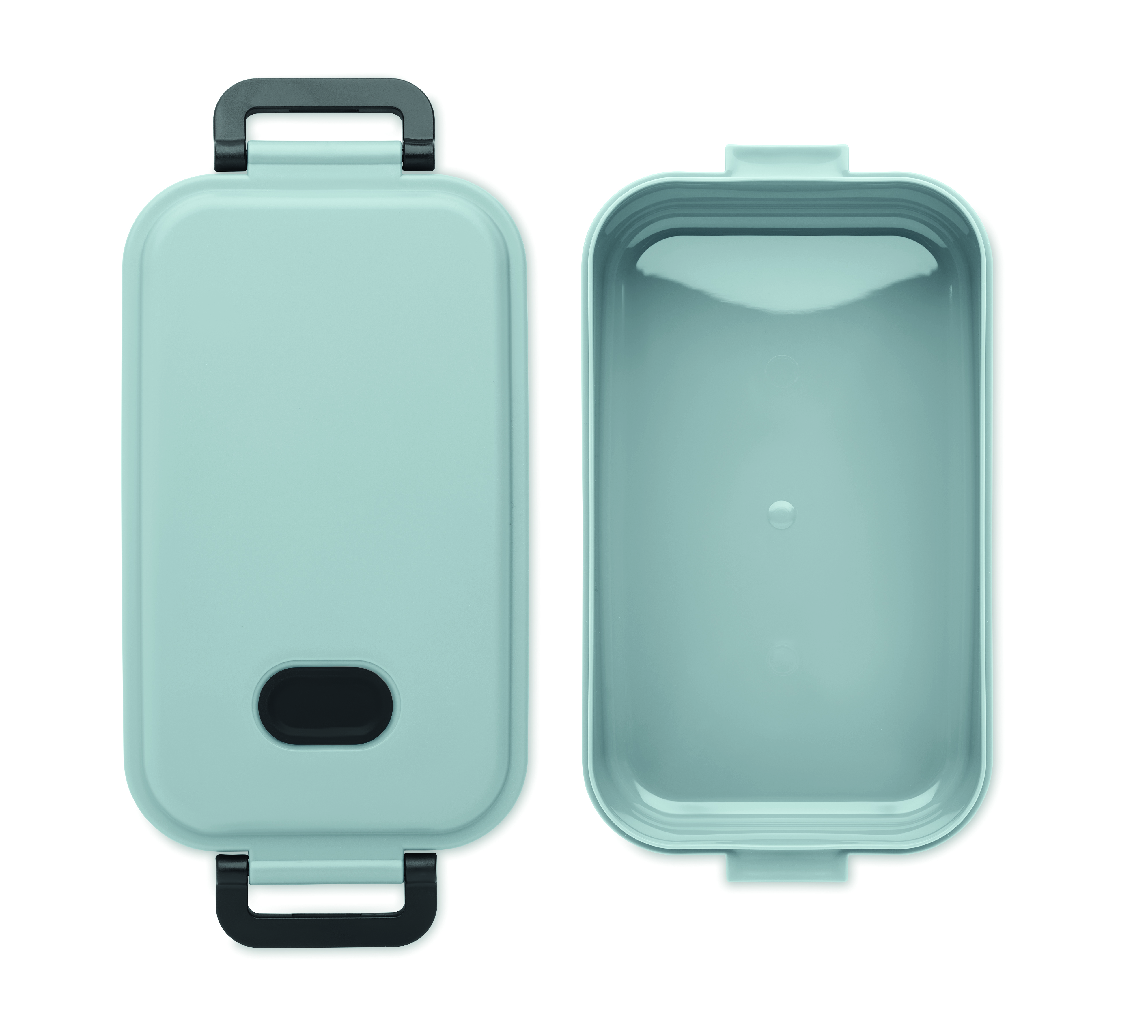 Lunch box z PP ze szczelną pokrywą, silikonowym zaworem i dwoma bocznymi klamrami. Pojemność: 800 ml.