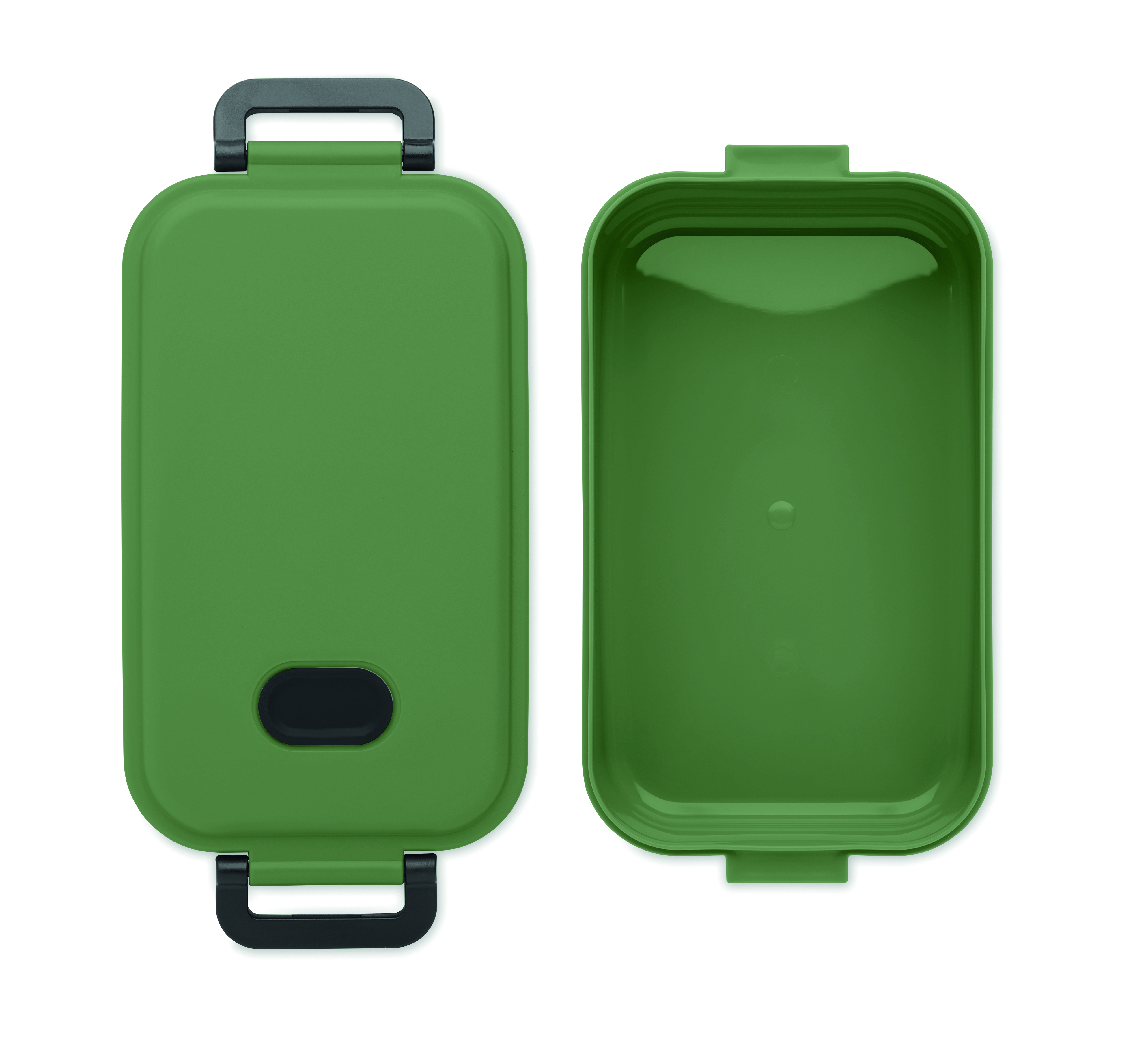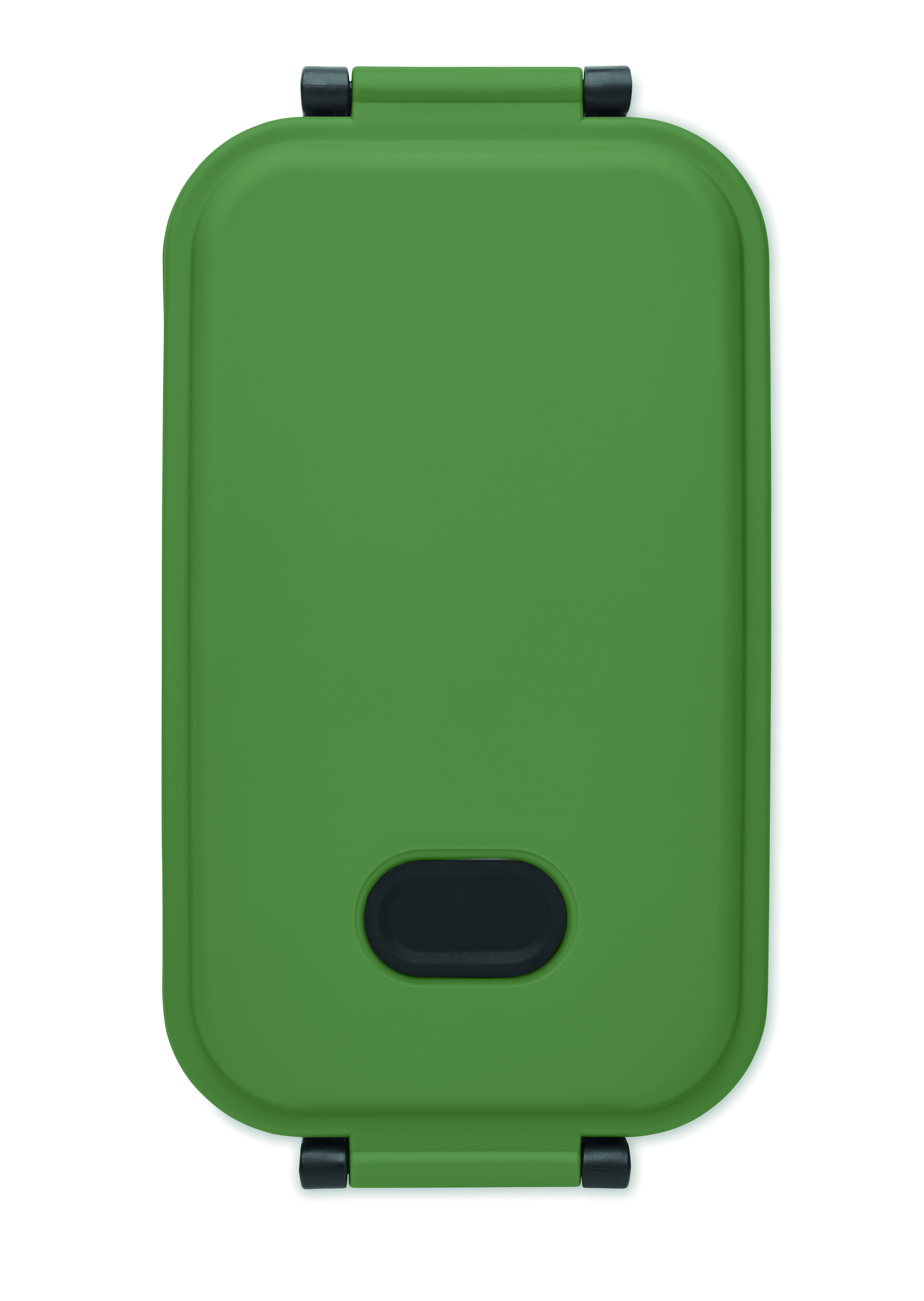 Lunch box z PP ze szczelną pokrywą, silikonowym zaworem i dwoma bocznymi klamrami. Pojemność: 800 ml.