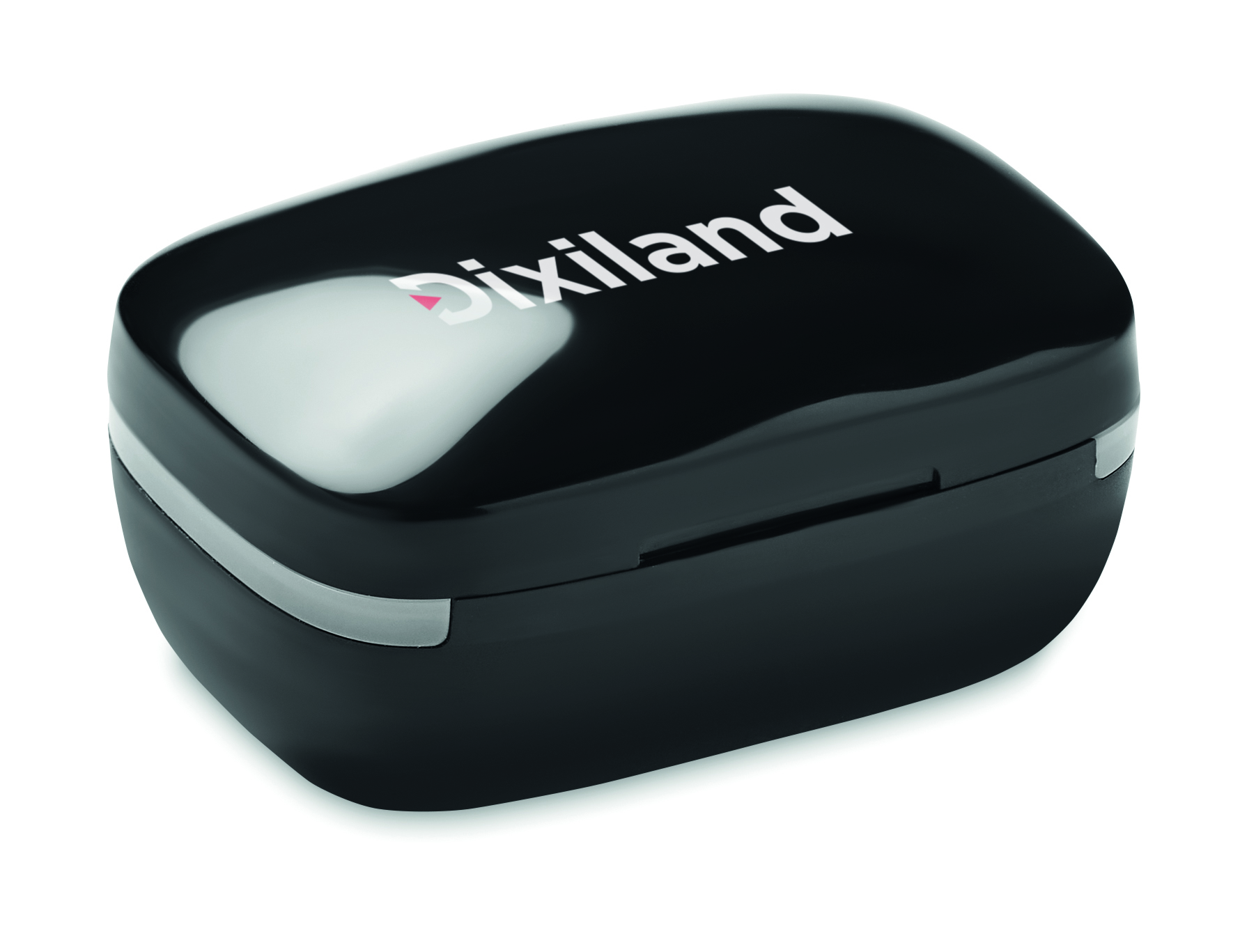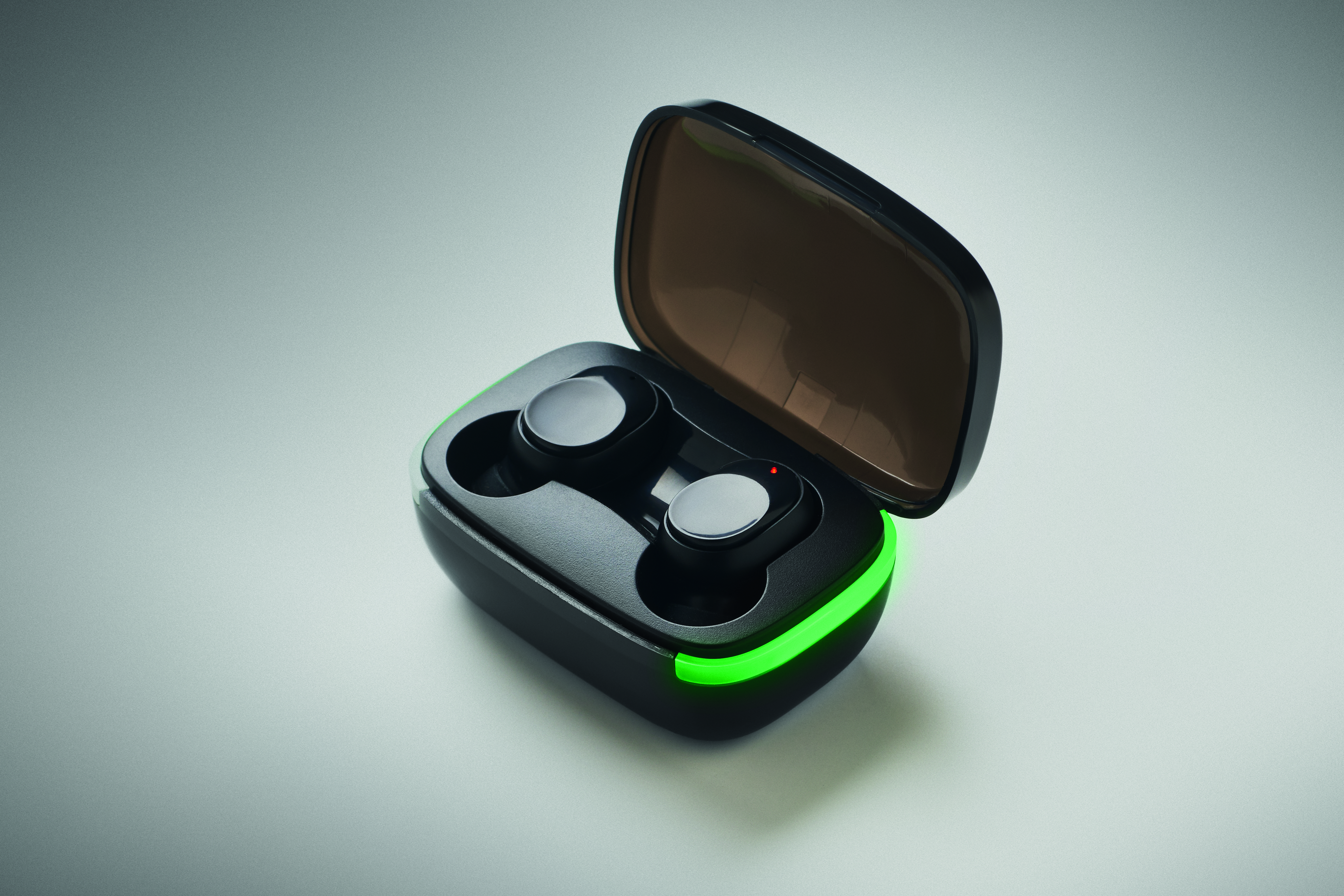 Zestaw 2 słuchawek True Wireless Stereo (TWS) 5.1 z mikrofonem i wbudowanym akumulatorem 25 mAh. Czas odtwarzania ok. 3 godziny. Automatyczne parowanie. W zestawie kabel do ładowania micro USB i stacja ładująca 200 mAh.