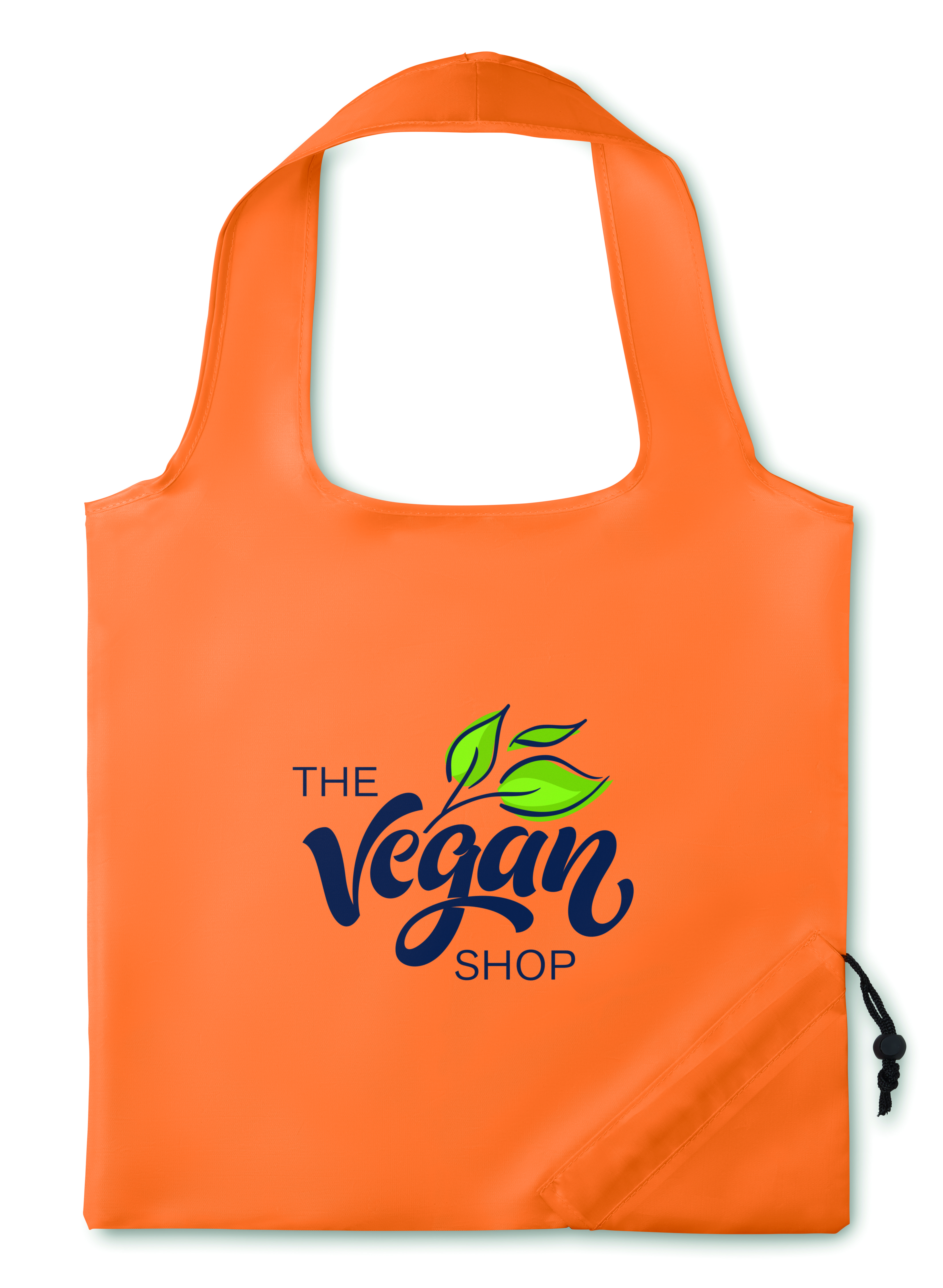 Torba na zakupy z poliestru 210D, składana do zamykanego na sznurek etui.