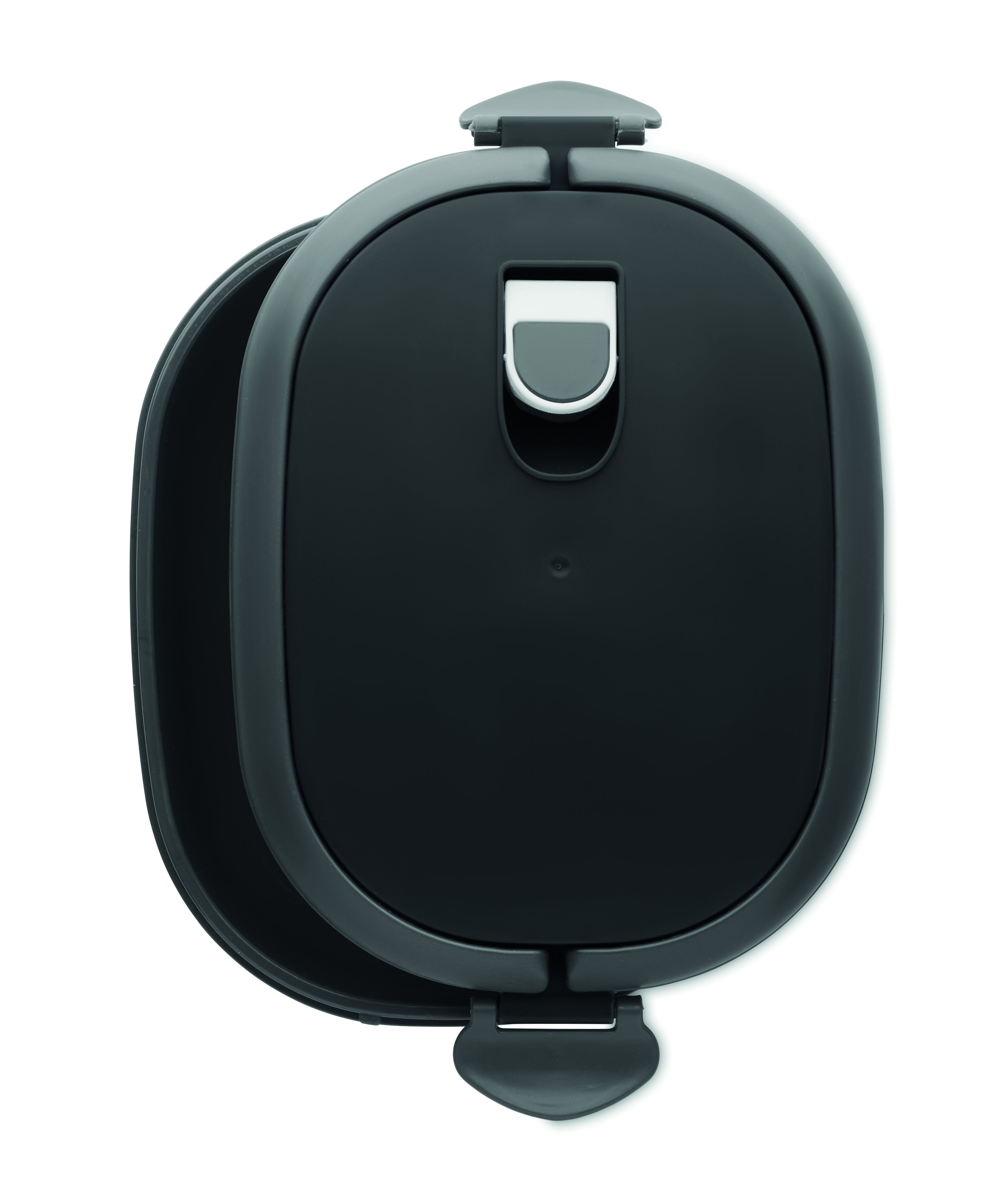 Pudełko śniadaniowe z hermetycznym wieczkiem, wykonane z PP. Nadaje się do użytku w kuchence mikrofalowej i zmywarce do naczyń. Pojemność 750 ml.