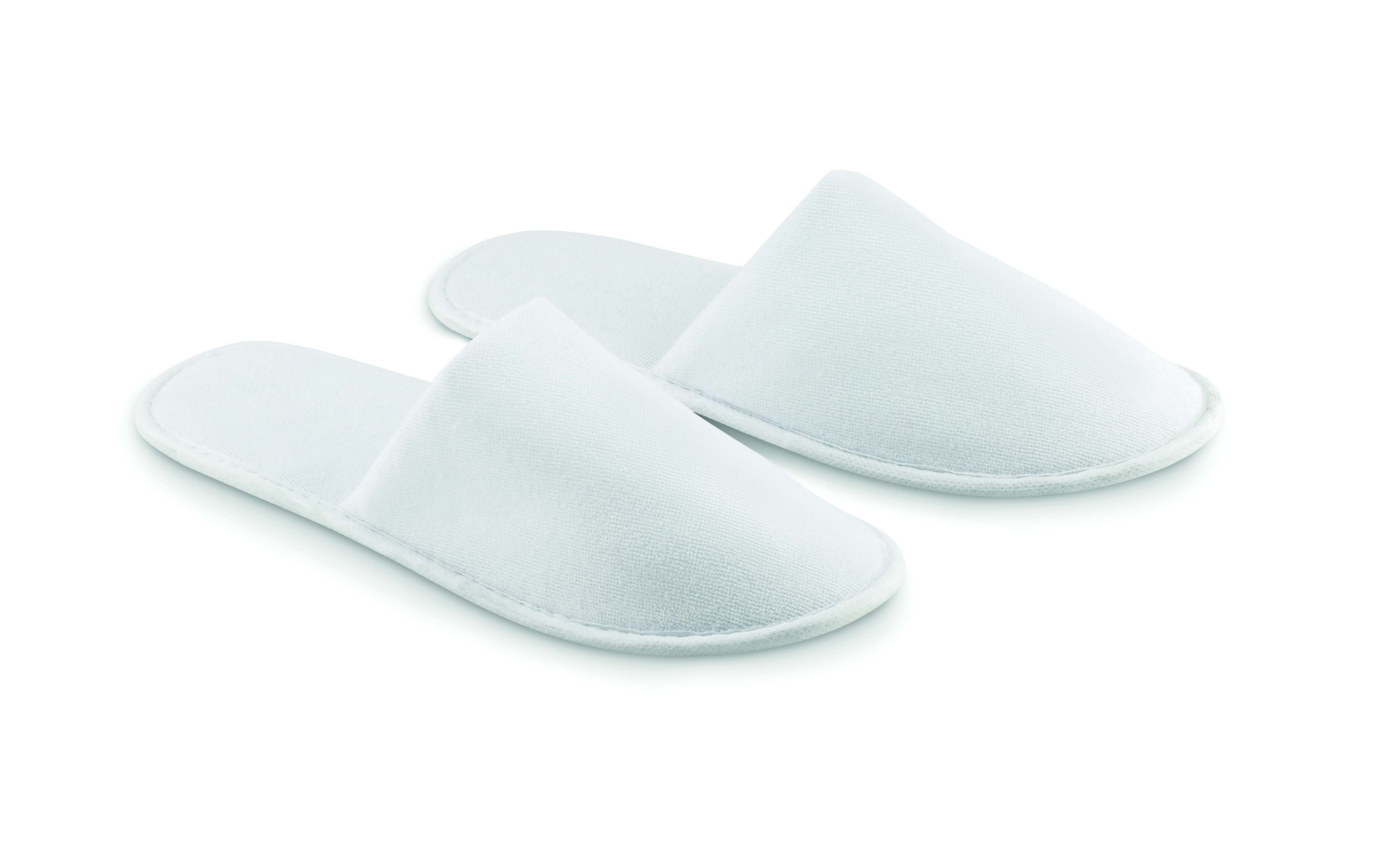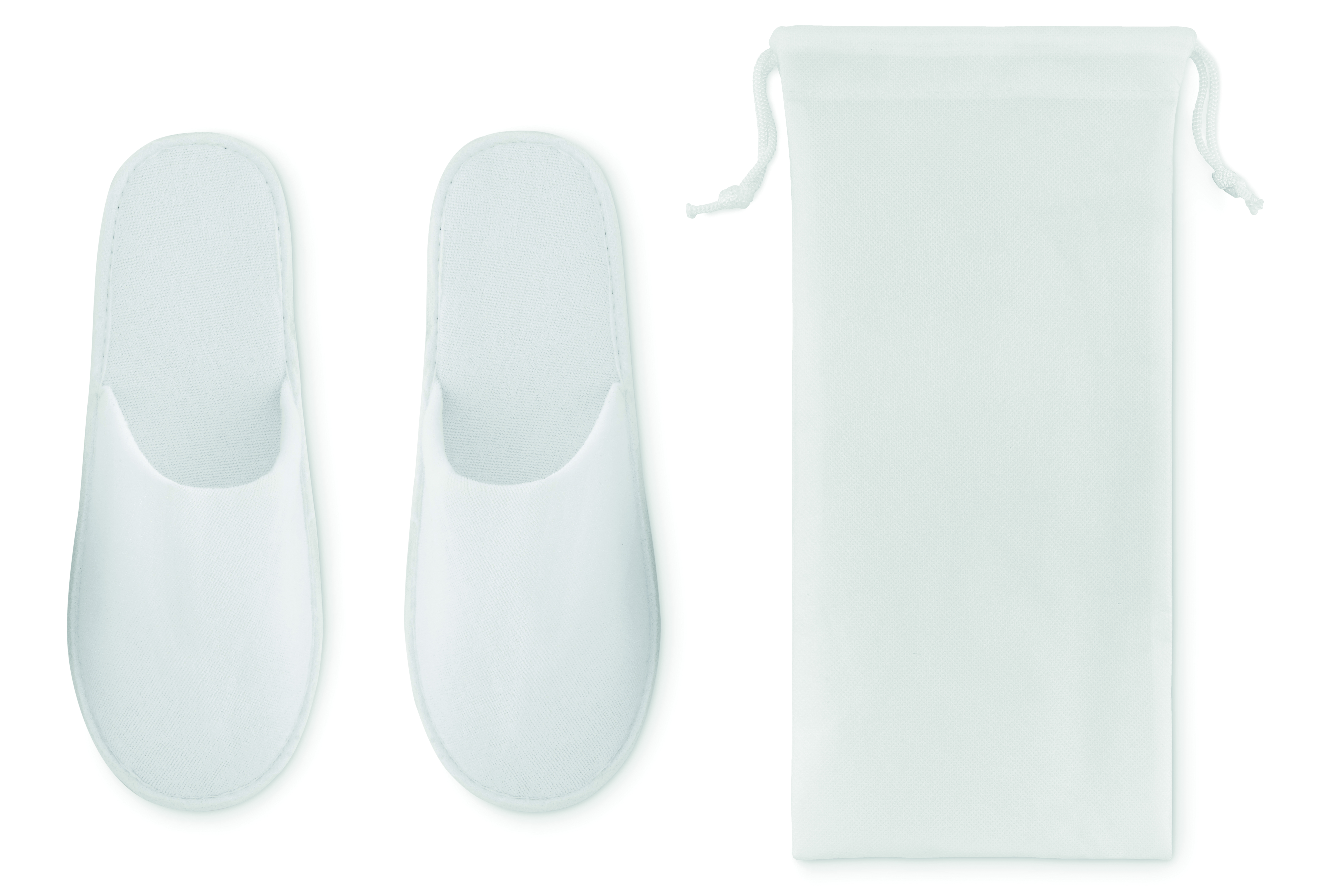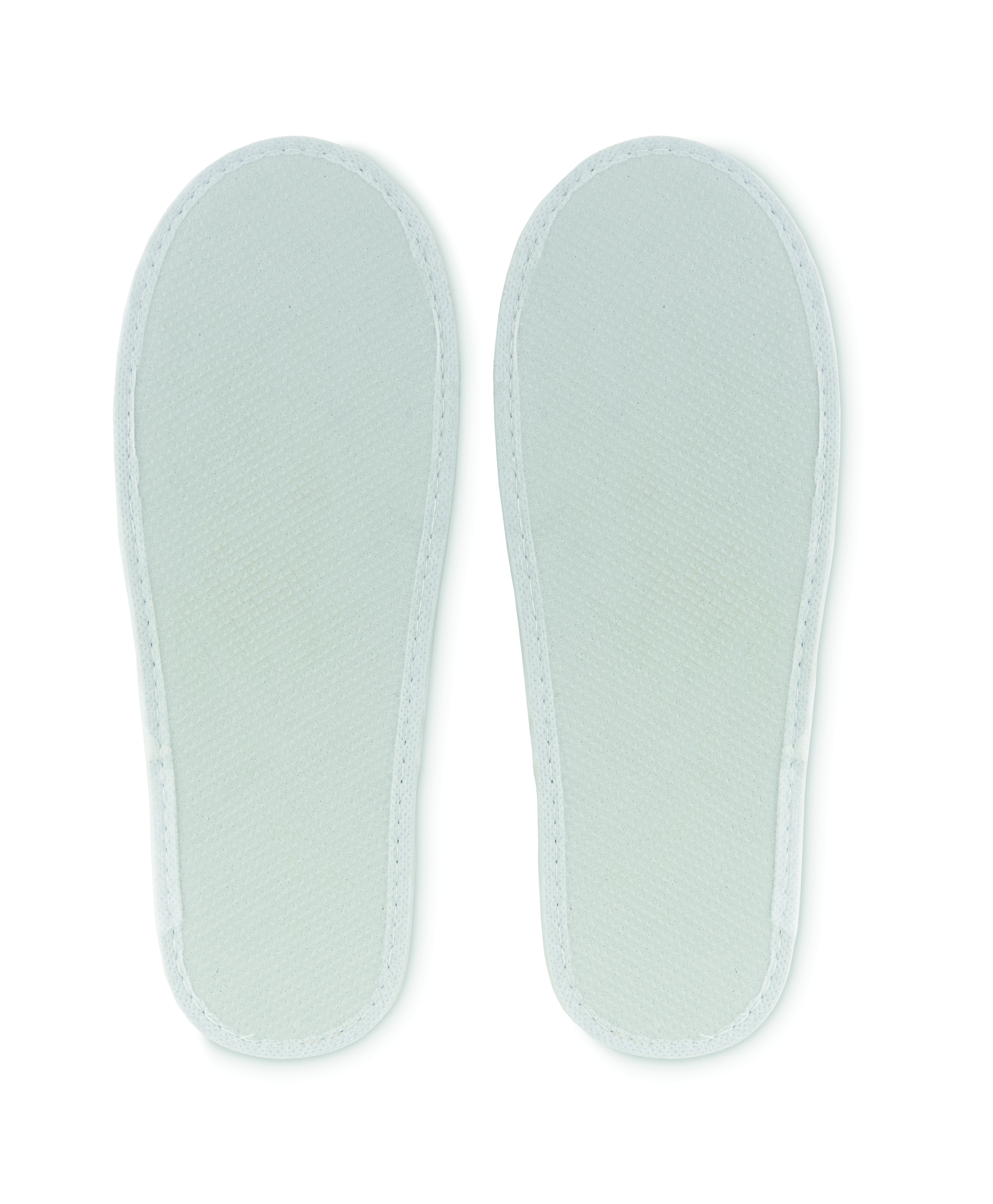 Para poliestrowych kapci hotelowych w etui z włókniny. Rozmiar EUR 43 - 44.
