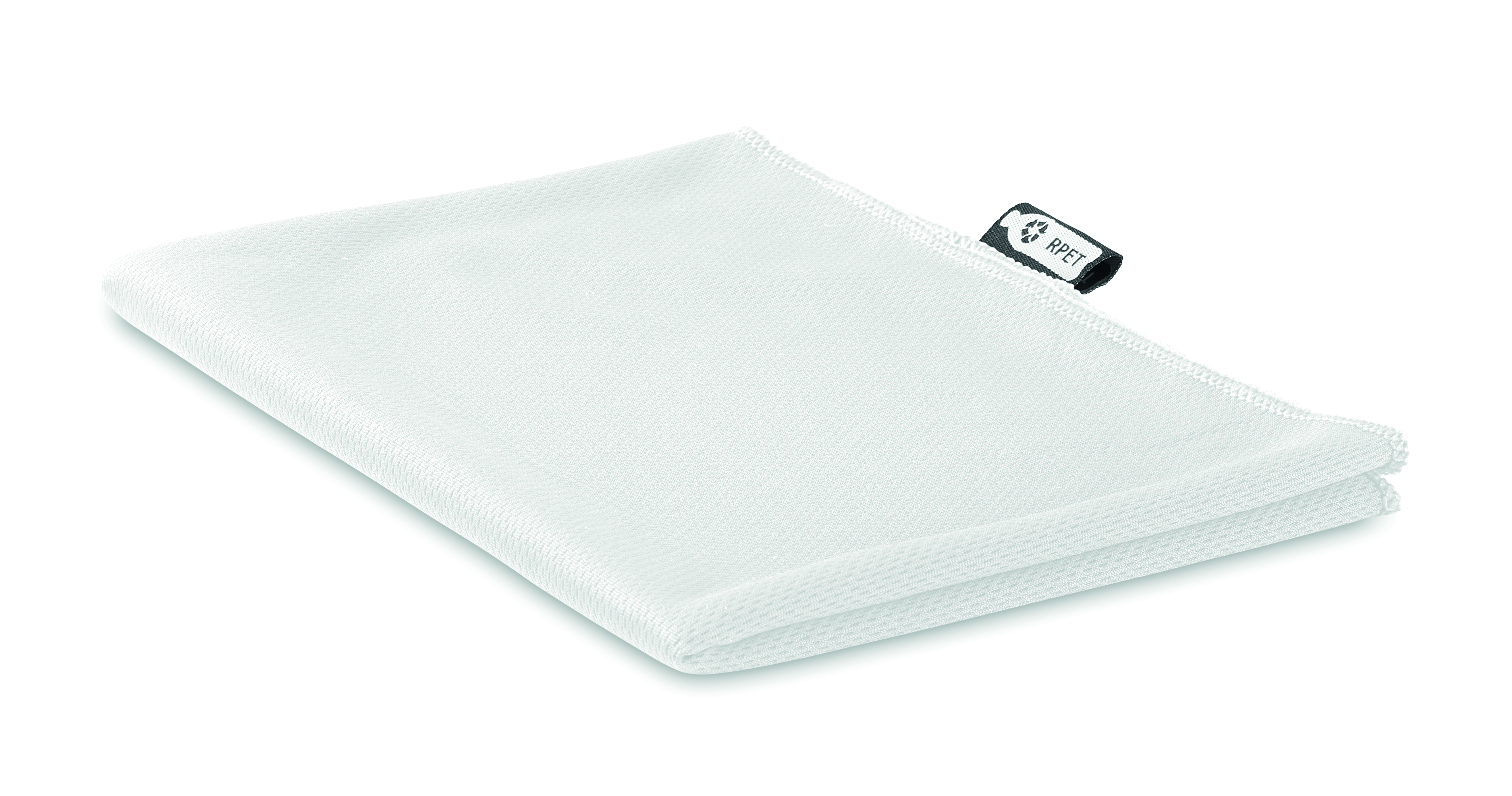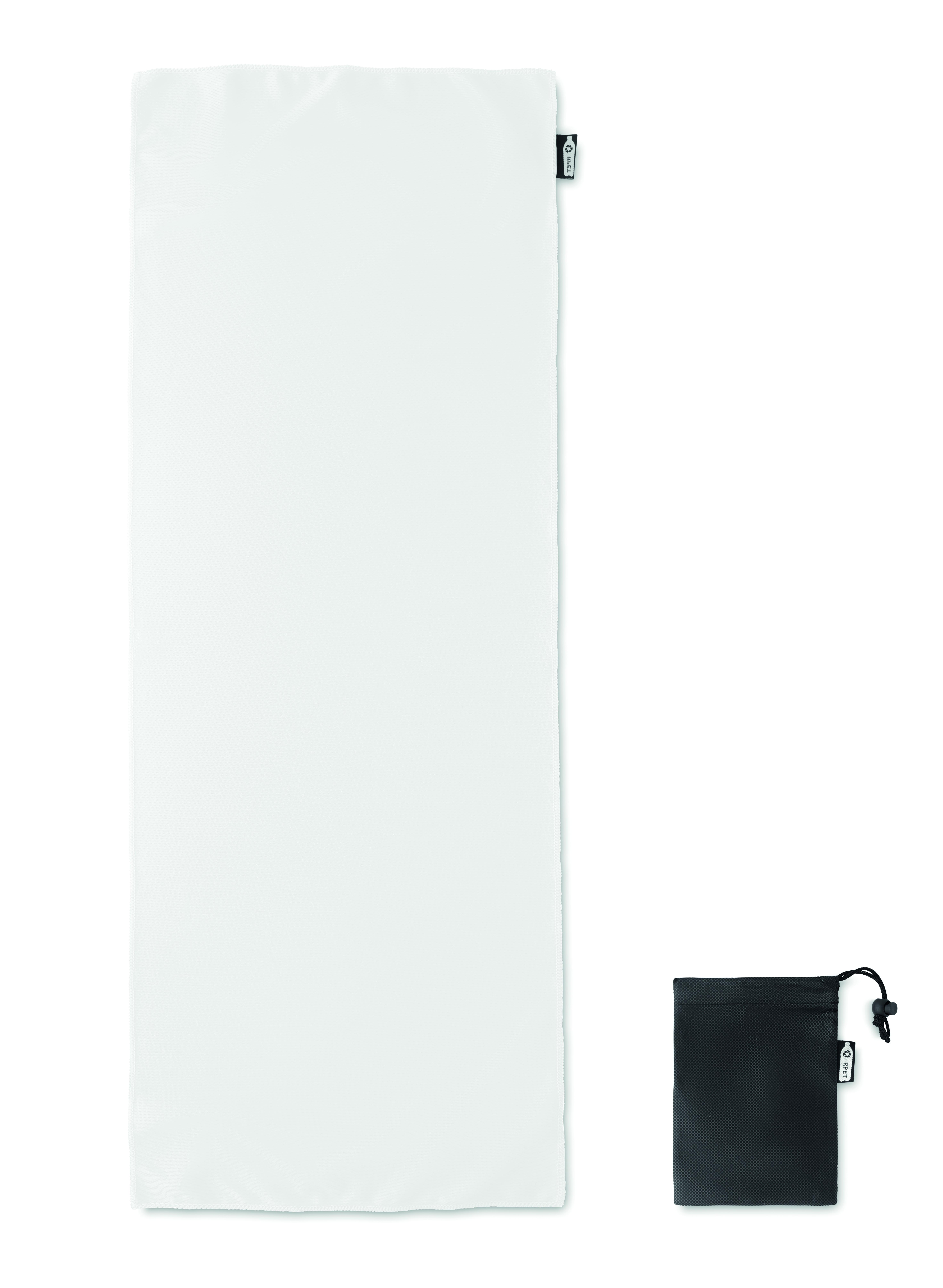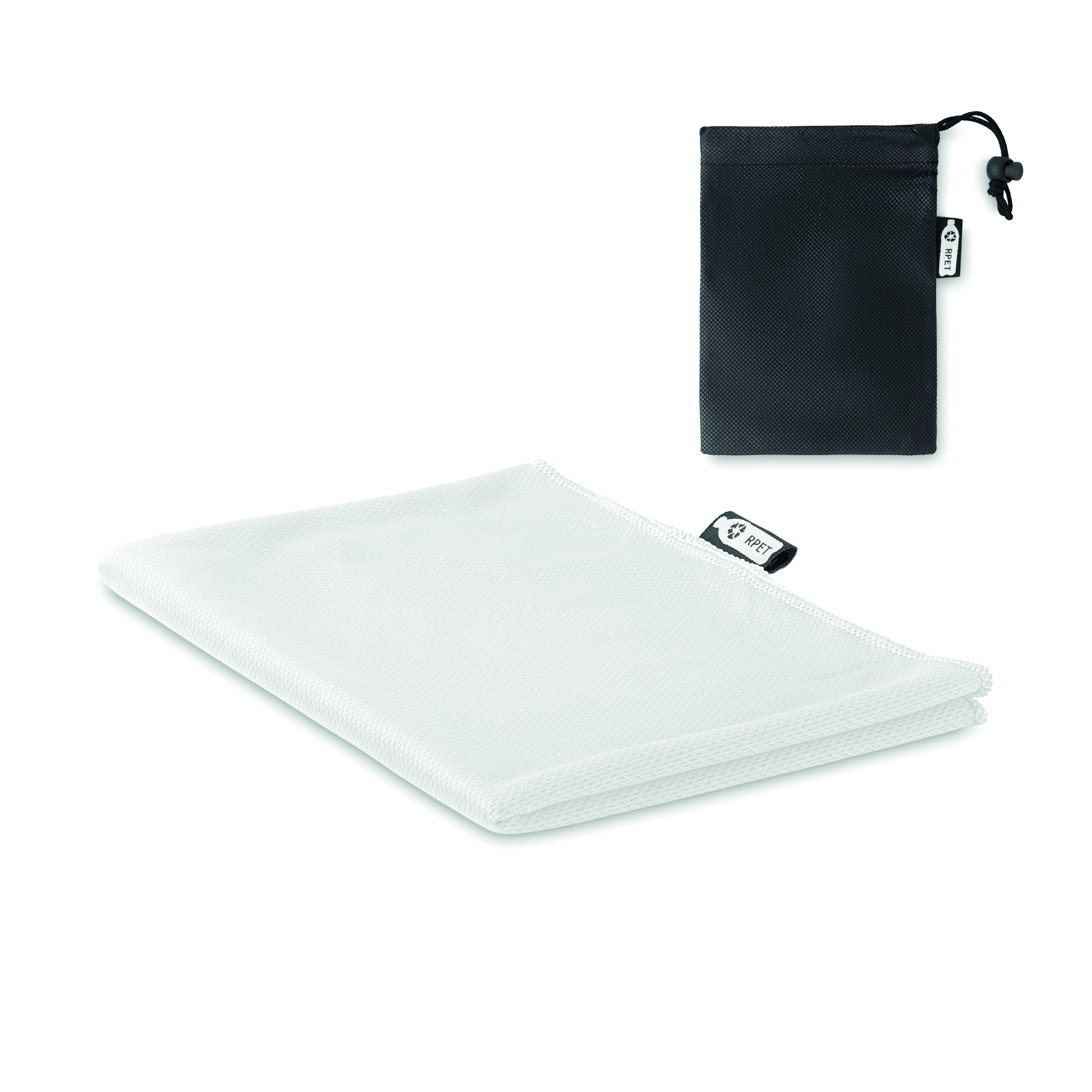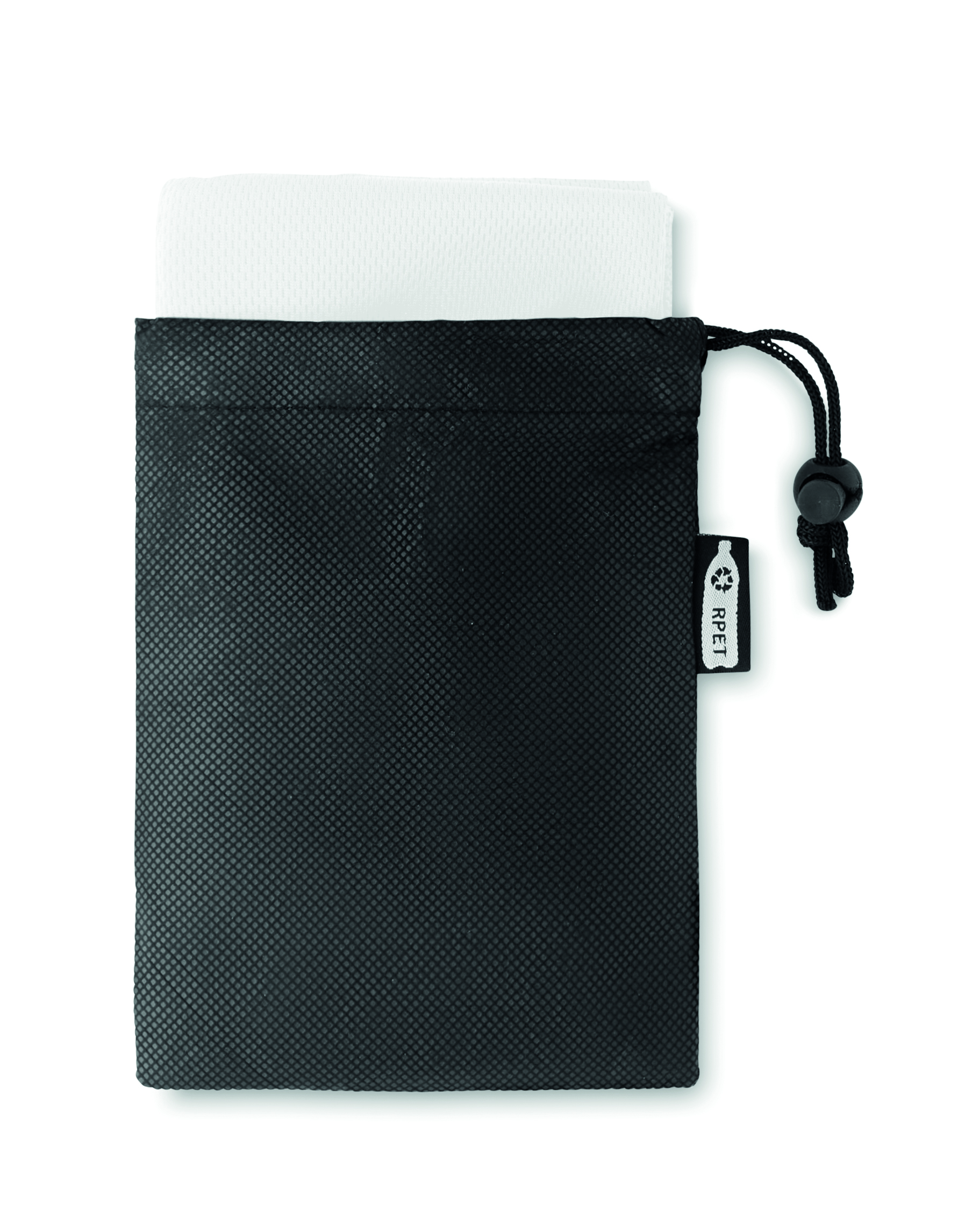 Ręcznik sportowy RPET o wysokiej chłonności wody, w zestawie worek z RPET.