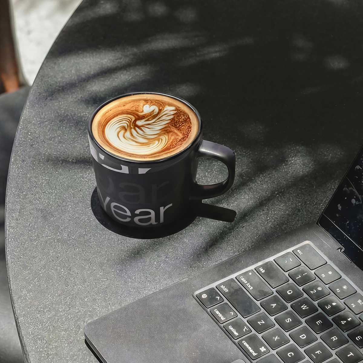 Szykowny czarny matowy kubek o nowoczesnej formie. Posiada duże mozliwości customizacji.