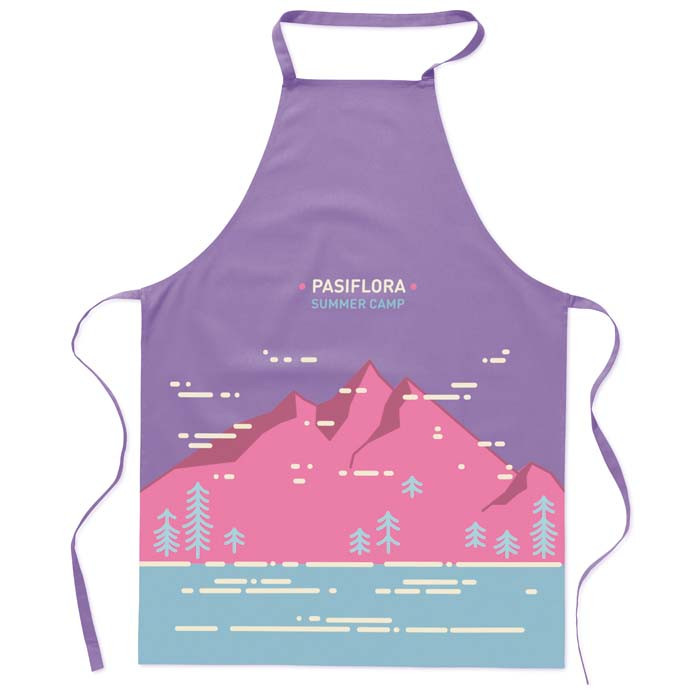 Fartuch na szelkach z białej bawełny o gramaturze 190g/m2 z nadrukiem cyfrowym na całej powierzchni.