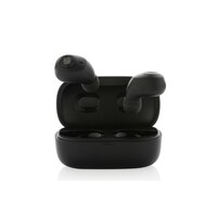 Bezprzewodowe słuchawki douszne, wykonane z ABS z recyklingu z certyfikatem RCS, całkowita zawartość materiałów z recyklingu obliczone na podstawie wagi całkowitej przedmiotu: 55%, funkcja redukcji szumów otoczenia podczas rozmów (ENC), wbudowane 2 mikrofony, funkcja odbierania połączeń, wodoodporne IPX4 (całkowita ochrona przed spryskiwaniem i zachlapaniem wodą z różnych kierunków z natężeniem do 10 litrów na minutę), dotykowy panel sterowania, do 6 godzin odtwarzania na jednym ładowaniu, etui ładujące zapewnia 20 godzin odtwarzania, nie zawiera PVC, opakowanie o zmniejszonej zawartości plastiku, ślad węglowy produktu: 0,66 kg CO2