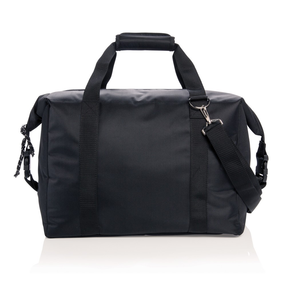 Torba termoizolacyjna, wykonana z poliestru 1680D i 600D, izolacja PEVA, pojemność 40 l, duża przegroda główna zmieści do 52 puszek 0,33 l lub 10 butelek 1,5 l, przegroda główna i przednia kieszeń na zamek błyskawiczny, specjalna konstrukcja z zapięciem z boku umożliwia łatwe przekształcenie torby w worek, otwieracz do butelek w komplecie, podwójnie wzmocnione uchwyty, regulowany pasek na ramię z możliwością odpięcia, ślad węglowy produktu: 6,59 kg CO2