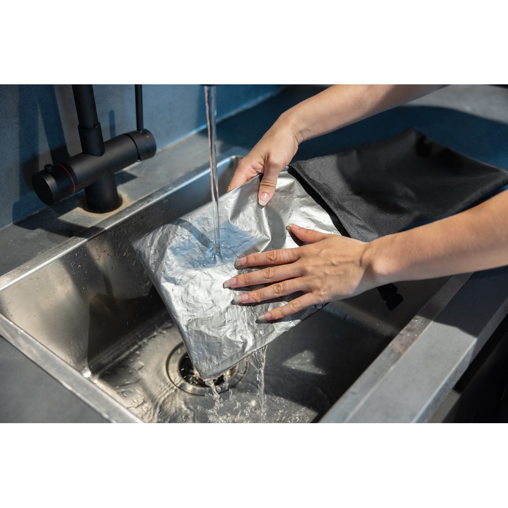 Torba termoizolacyjna, zwijana konstrukcja, regulowany rozmiar, szczelne zamknięcie, dzięki zastosowaniu technologii AWARE™ wykorzystane włókna są identyfikowalne z pochodzenia oraz wyprodukowane zgodnie z ideą zrównoważonego rozwoju, 2% wpływów z każdego sprzedanego produktu z AWARE™ jest przekazywane na rzecz Water.org