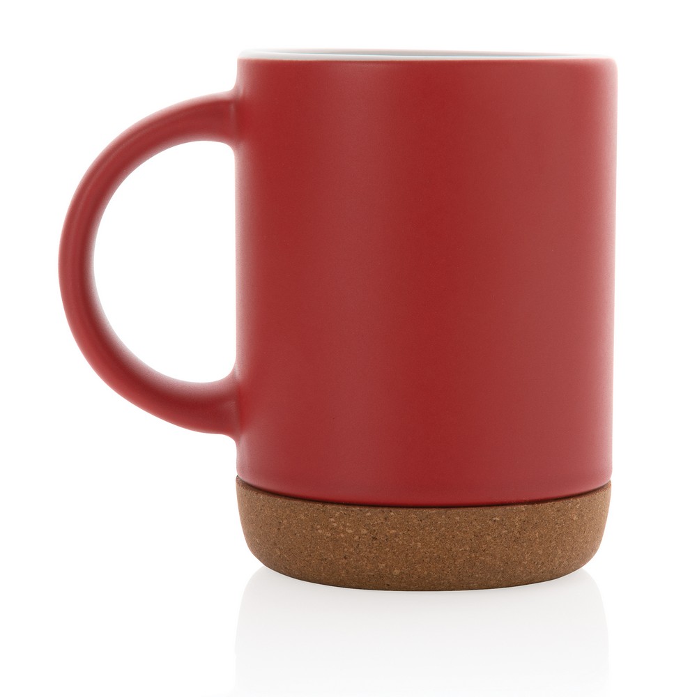Kubek ceramiczny 280 ml, korkowa podstawa, nie należy używać w kuchence mikrofalowej, zalecane mycie ręczne, ślad węglowy produktu: 1,39 kg CO2