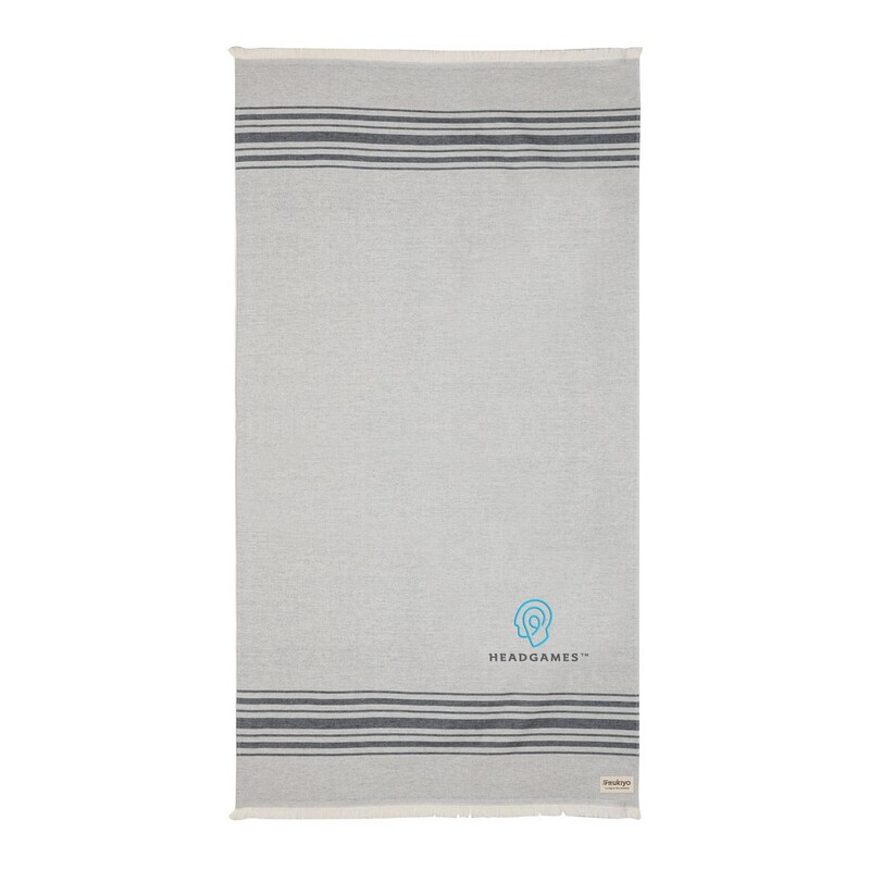 Ręcznik, lekki, wysoce chłonny, odporny na piasek i szybkoschnący, można go wykorzystać również jako koc czy obrus, wykonany z mieszanki 88% bawełny z certyfikatem OEKO-TEX (w procesie produkcji nie są wykorzystane żadne szkodliwe substancje lub barwniki) oraz w 12% z bawełny z recyklingu, dzięki zastosowaniu technologii śledzącej AWARE™ wykorzystane włókna są identyfikowalne z pochodzenia, 2% wpływów z każdego sprzedanego produktu jest przekazywane na rzecz Water.org, można prać w pralce, wymiar 100 x 180 cm (wyprodukowany w Europie / made in Europe)