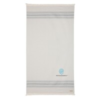 Ręcznik, lekki, wysoce chłonny, odporny na piasek i szybkoschnący, można go wykorzystać również jako koc czy obrus, wykonany z mieszanki 88% bawełny z certyfikatem OEKO-TEX (w procesie produkcji nie są wykorzystane żadne szkodliwe substancje lub barwniki) oraz w 12% z bawełny z recyklingu, dzięki zastosowaniu technologii śledzącej AWARE™ wykorzystane włókna są identyfikowalne z pochodzenia, 2% wpływów z każdego sprzedanego produktu jest przekazywane na rzecz Water.org, można prać w pralce, wymiar 100 x 180 cm (wyprodukowany w Europie / made in Europe)