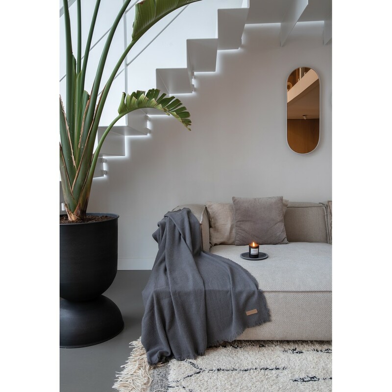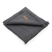 Koc z frędzlami, tkany, wykonany z przędzy Polylana®, która pochodzi z recyklingu, dzięki zastosowaniu technologii AWARE™ wykorzystane materiały są identyfikowalne z pochodzenia, wymiar 130 x150 cm, 2% wpływów z każdego sprzedanego produktu jest przekazywane na rzecz Water.org,