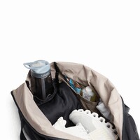 Torba podróżna, składana, zapinana na zamek błyskawiczny, posiada zewnętrzną kieszeń oraz wewnętrzne kieszenie na zatrzaski, wzmocniona krawędź zapewnia stabilność podczas zapinania, regulowany i odpinany wyściełany pasek na ramię