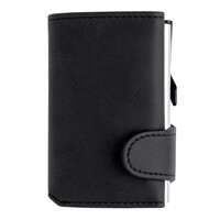 Etui na karty kredytowe, portfel z ochroną RFID, etui wykonane z wytrzymałego aluminium, portfel z PU, mieści do 10 kart lub do 6 z tłoczeniem, posiada suwak boczny do wysuwania kart, ślad węglowy produktu: 0,81 kg CO2