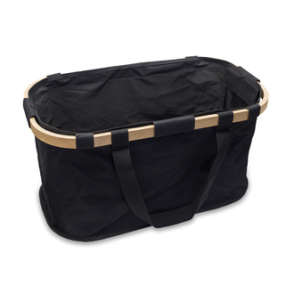 Stylowy i funkcjonalny kosz na zakupy z dodającą elegancji drewnianą ramą. Posiada solidne uchwyty, które zapewniają komfort noszenia. Dzięki składanej konstrukcji można go łatwo złożyć na płasko, co ułatwia przechowywanie. Maksymalne obciążenie: do 9 kg. Pojemność: 33 litry.