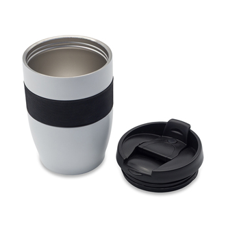 Kubek termiczny o pojemności 300 ml, wykonany z wysokiej jakości stali nierdzewnej. Wnętrze ze stali 18/8. Podwójne ścianki z próżniową izolacją zapewniają doskonałe właściwości termoizolacyjne — napój pozostaje ciepły (powyżej 40°C) do 5 godzin. Silikonowa opaska ułatwia pewny chwyt i zwiększa komfort użytkowania.
