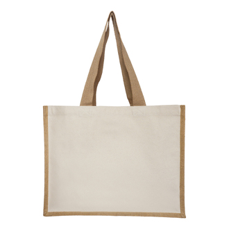 Torba na zakupy z długimi uchwytami, wykonana z bawełny o gramaturze 280 g/m2 oraz juty. Szerokość klina 15,5 cm.
