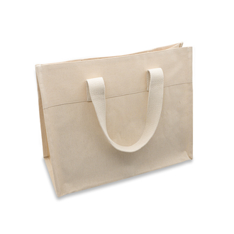 Pojemna torba wykonana z bawełny 240 g/m2, wykończona od wewnątrz wodoodpornym laminatem. W środku znajduje się praktyczna kieszonka zamykana na zamek – idealna na klucze lub telefon.