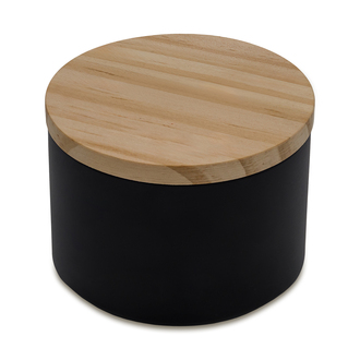 Świeca woskowa na bazie roślinnej o delikatnym zapachu cedru w czarnym metalowym pojemniku, zamykana bambusowym wieczkiem. Waga wosku 200g. Czas palenia: 18 godzin.