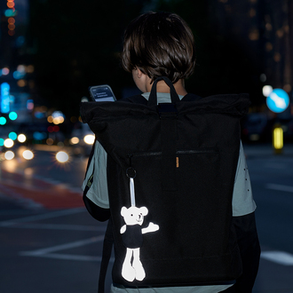 Ręcznie szyty brelok "miś" w koszulce. Wykonany z materiału odbijającego światło.