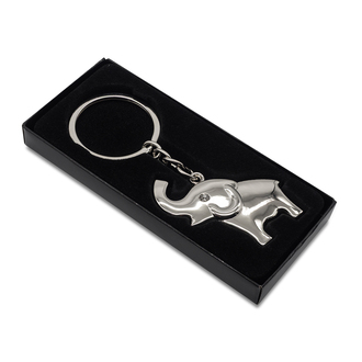 Brelok w kształcie słonia z uniesioną trąbą, symbolizującego szczęście, siłę i pomyślność. Pakowany w czarne pudełko upominkowe.