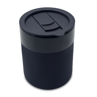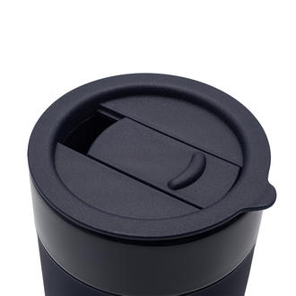 Ceramiczny kubek o pojemności 370 ml. Posiada silikonowe gładkie etui oraz pokrywkę. Minimalistyczny i funkcjonalny design.