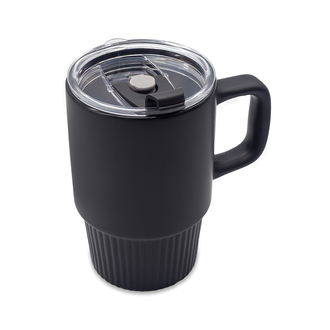 Kubek ceramiczny (440 ml) w matowym wykończeniu. Wyposażony w praktyczną, przezroczystą pokrywkę. Minimalistyczny i nowoczesny, idealny do biura i domu.