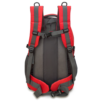 Plecak turystyczno-trekkingowy. Składający się z komory głównej z osobną kieszenią na laptop do 17" zapinaną na rzep. Dodatkowo plecak posiada dużą kieszeń przednią i jedną mniejszą, obie zapinane na zamek. Dwie boczne kieszonki z siateczki. Po bokach dodatkowo znajdują się panele z regulowanymi paskami i klamrami. Wygodne plecy i szelki wykonane są z miękkiej pianki z wentylacją typu mesh. Stabilne noszenie plecaka gwarantuje poziomy, regulowany pasek piersiowy z klamrą oraz miękki pas biodrowy. Podszewka z poliestru 210T. Szwy wewnętrzne wzmocnione poliestrową taśmą. Pojemność 33 L.