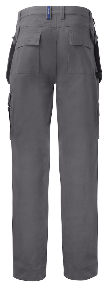 Spodnie do pasa z wytrzymałej bawełny. Kieszenie kaburowe, które można schować do kieszeni bocznych, jedna z dodatkową kieszenią i jedna z pętlami na narzędzia. Tylne kieszenie z patką i zapięciem na rzep. Kieszeń na nogawce przeznaczona na miarę składaną i z miejscem na przechowywanie noża. Dwie pętle na młotek, po jednej z każdej strony. Wzmocnienia wewnątrz kieszeni kaburowych, kieszeni na miarę i na kolanach. Wewnętrzne kieszenie na ochraniacze kolan, regulowane na dwóch poziomach wysokości. Rozmiary C42-C64 mogą być wydłużone o dodatkowe 5 cm.