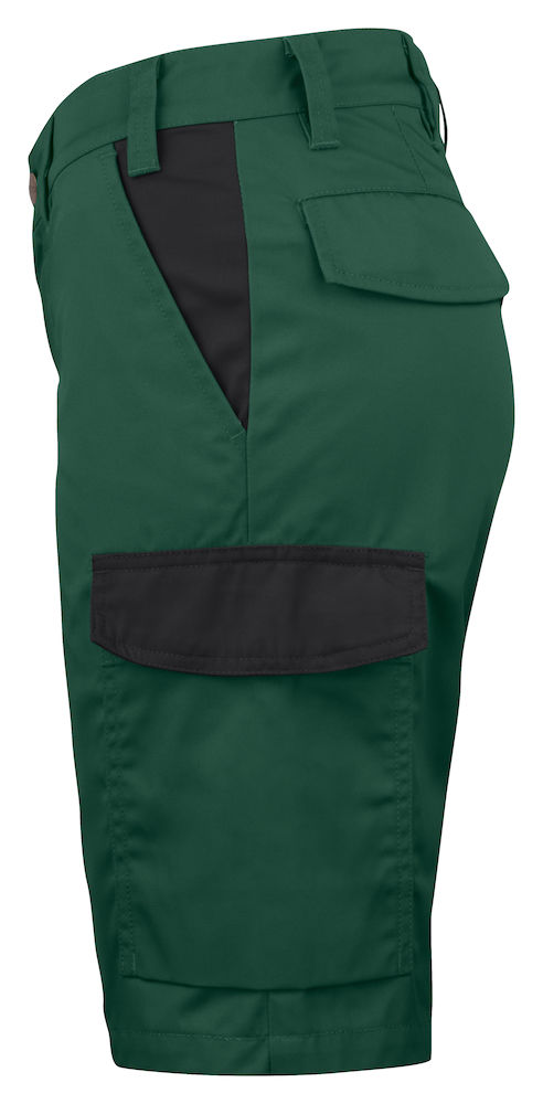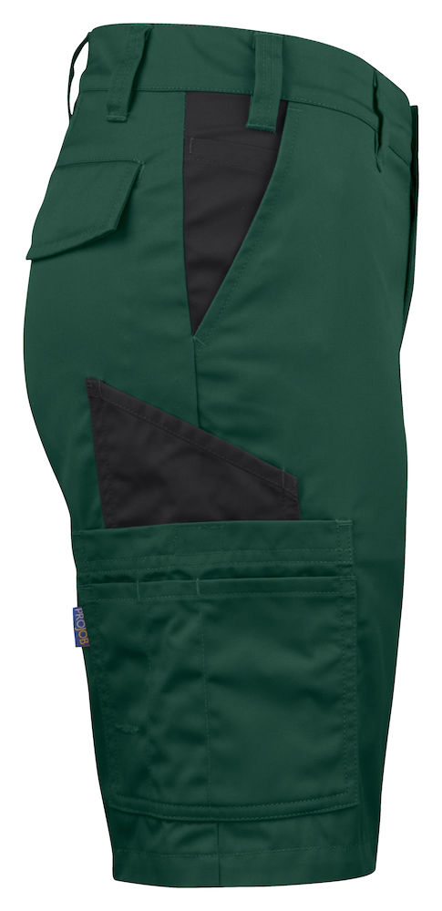 Lekkie spodenki z bocznymi kieszeniami. Kieszenie na nogawkach, po lewej stronie kieszeń z patką i zapięciem na rzep, po prawej stronie kieszenie na długopisy i narzędzia oraz jedna kieszeń na miarkę. Tylne kieszenie z patką i zapięciem na rzep.